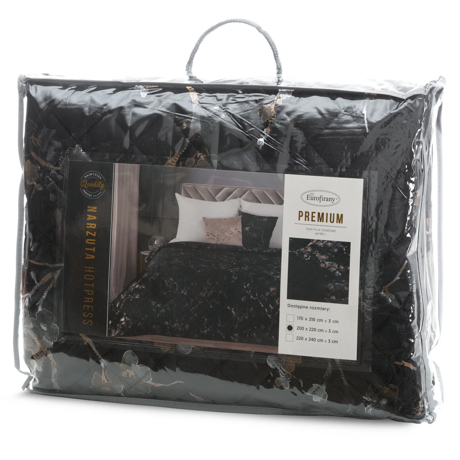 - Narzuta welwetowa, wykonana techniką "hot press"z foliowym nadrukiem szerokość: 200 cm, długość: 220 cm, kolor: czarny, Gramatura: 210 GSM, Skład: 100% poliester