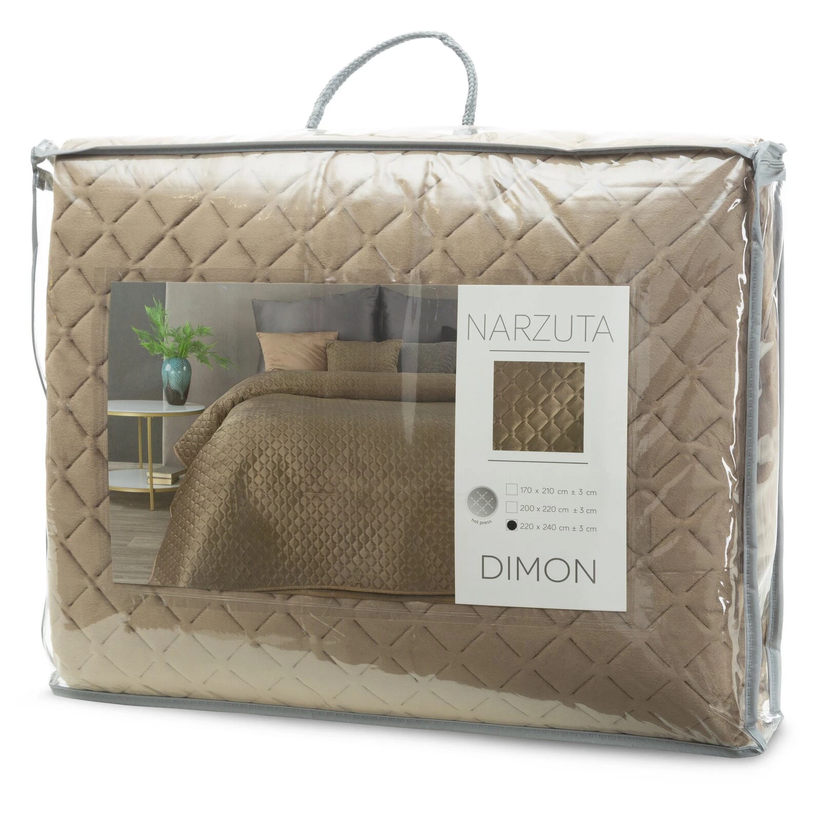 - Narzuta welwetowa dwustronna wykonana metodą hot press szerokość: 220 cm, długość: 240 cm, kolor: beżowy, Gramatura: 180 GSM, Skład: 100% poliester