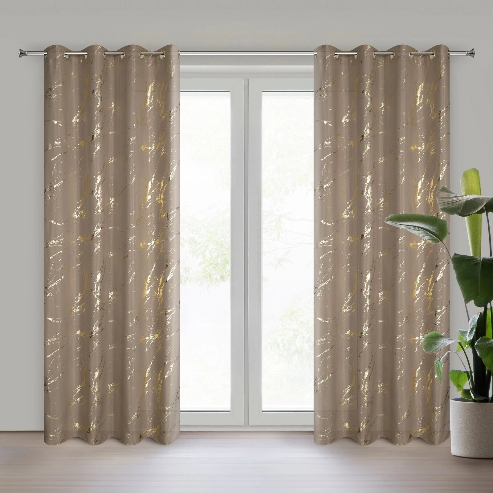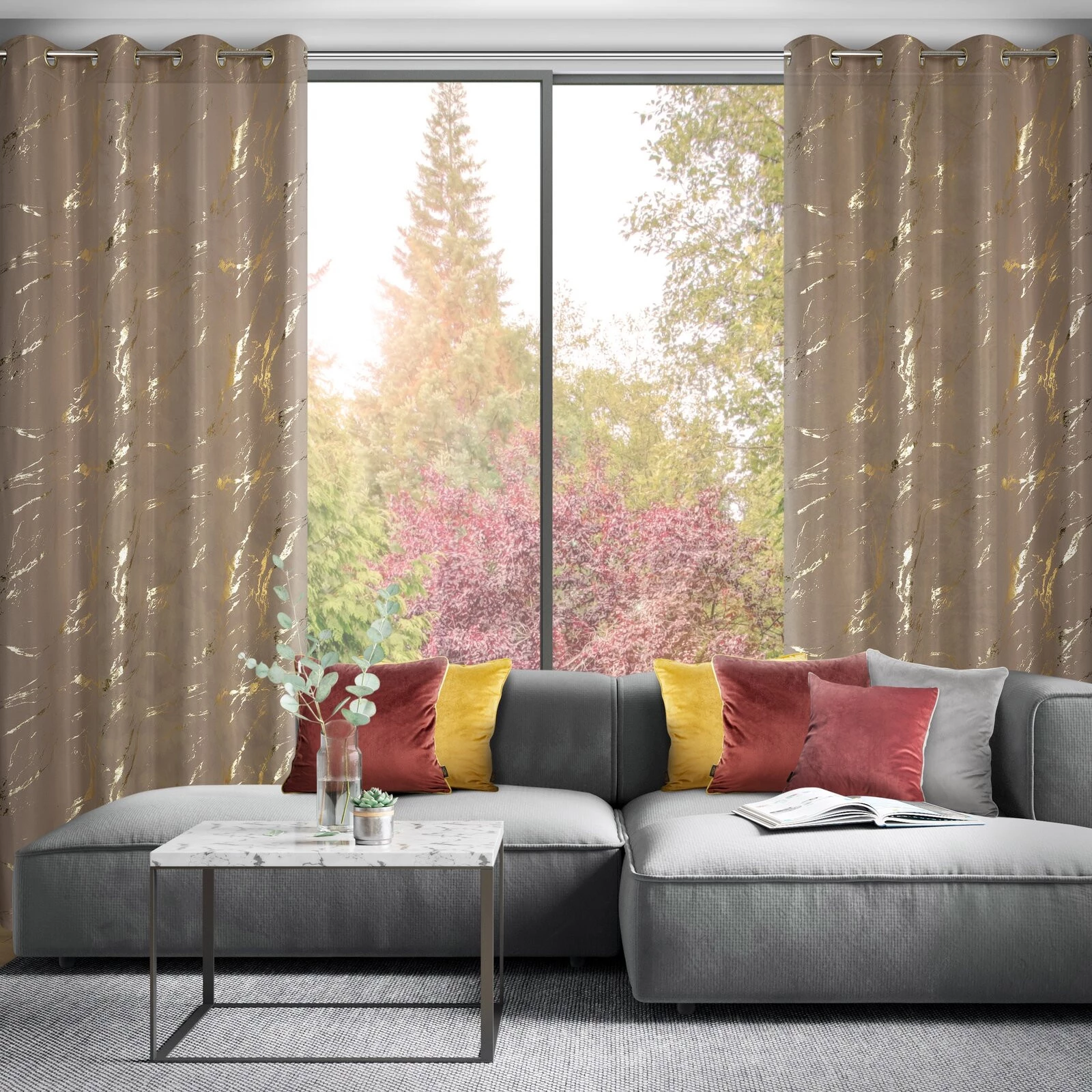 Zasłona gotowa z mikrofibry z błyszczącym nadrukiem szerokość: 140 cm, długość: 250 cm, kolor: brązowy, Gramatura: 75 GSM, Skład: 100% poliester