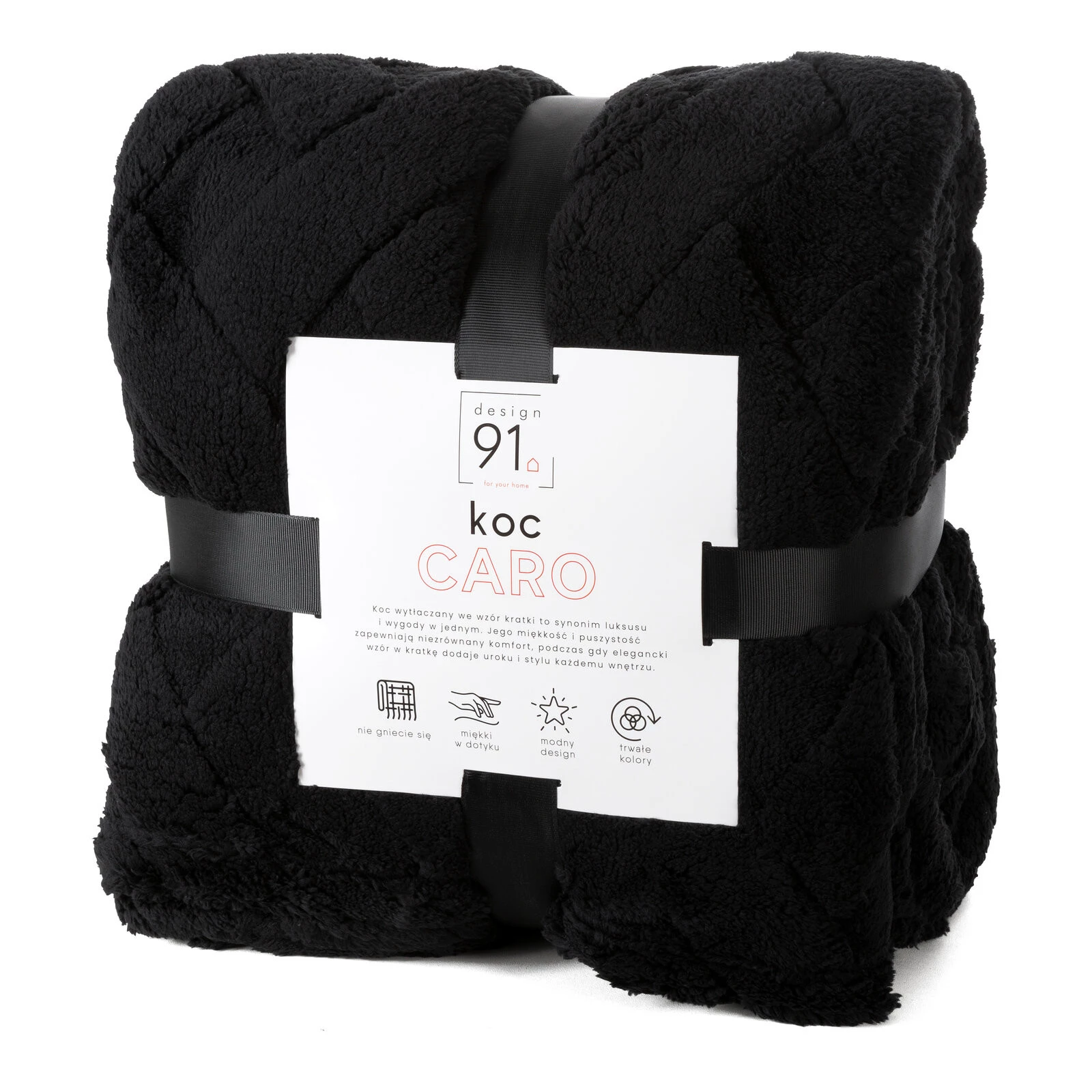 - Klasyczny koc z przyjemnego w dotyku włókna w technologii mikroflano. Jednobarwna, puszysta faktura ozdobiona jest minimalistycznym tłoczeniem w formie jodełki. szerokość: 170 cm, długość: 210 cm, kolor: czarny, Gramatura: 340 GSM, Skład: 100% poliester