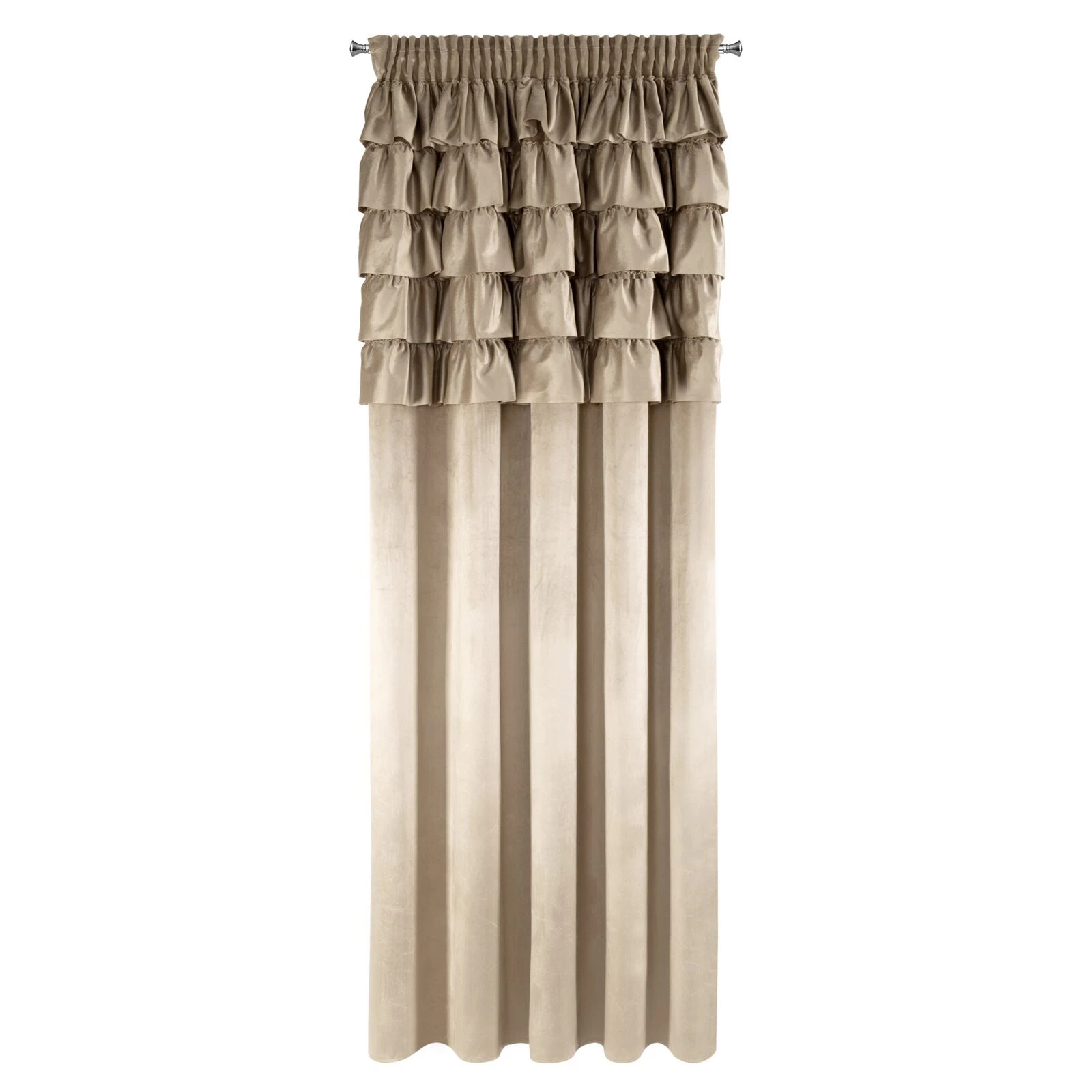 Zasłona gotowa welwetowa z falbanami od góry szerokość: 140 cm, długość: 270 cm, kolor: ciemnobeżowy, Gramatura: 200 GSM, Skład: 100% poliester