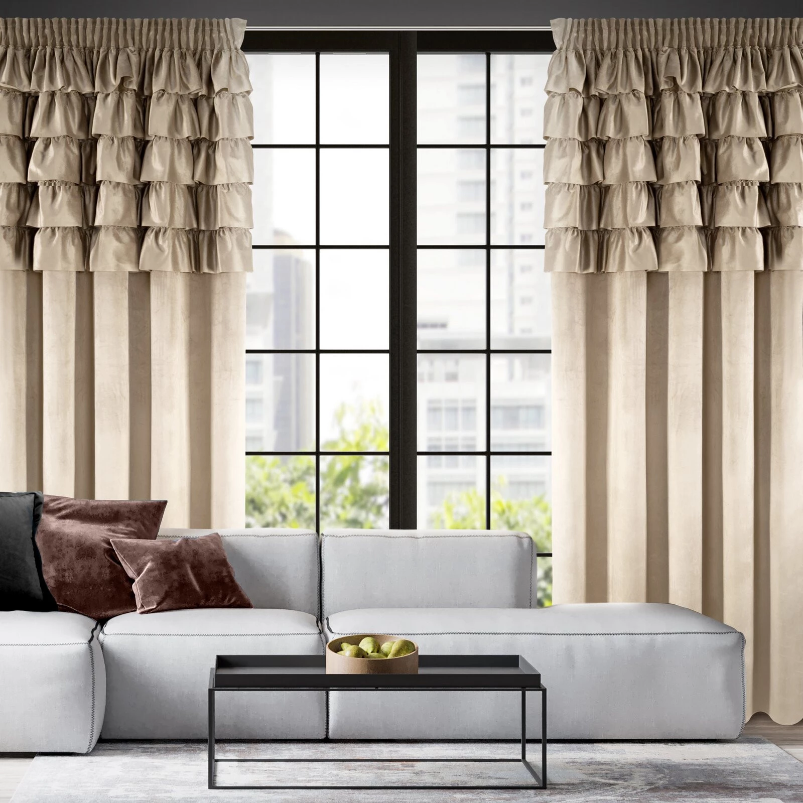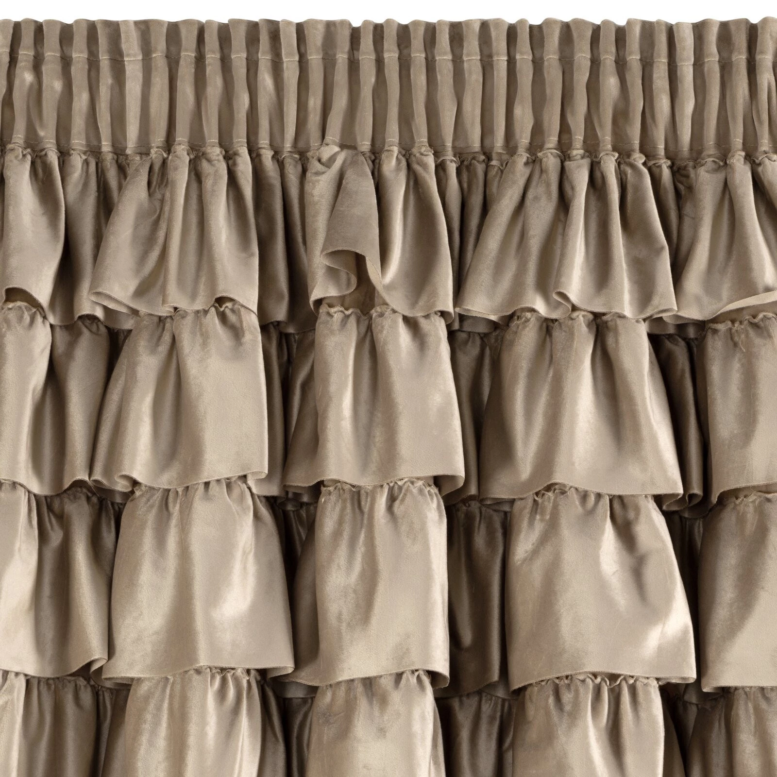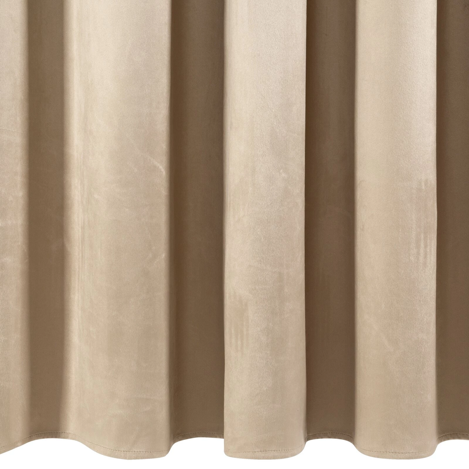 - Zasłona gotowa welwetowa z falbanami od góry szerokość: 140 cm, długość: 270 cm, kolor: ciemnobeżowy, Gramatura: 200 GSM, Skład: 100% poliester