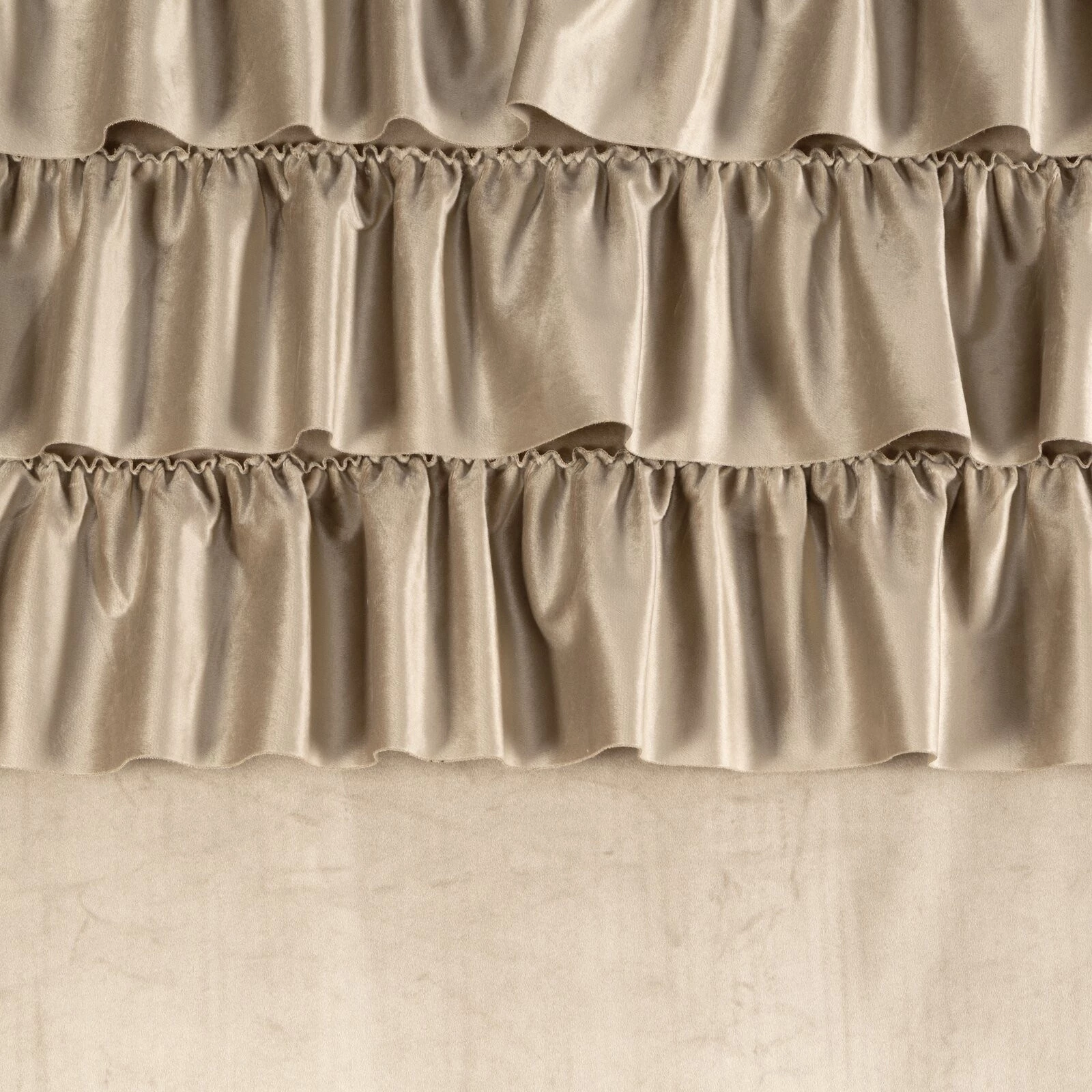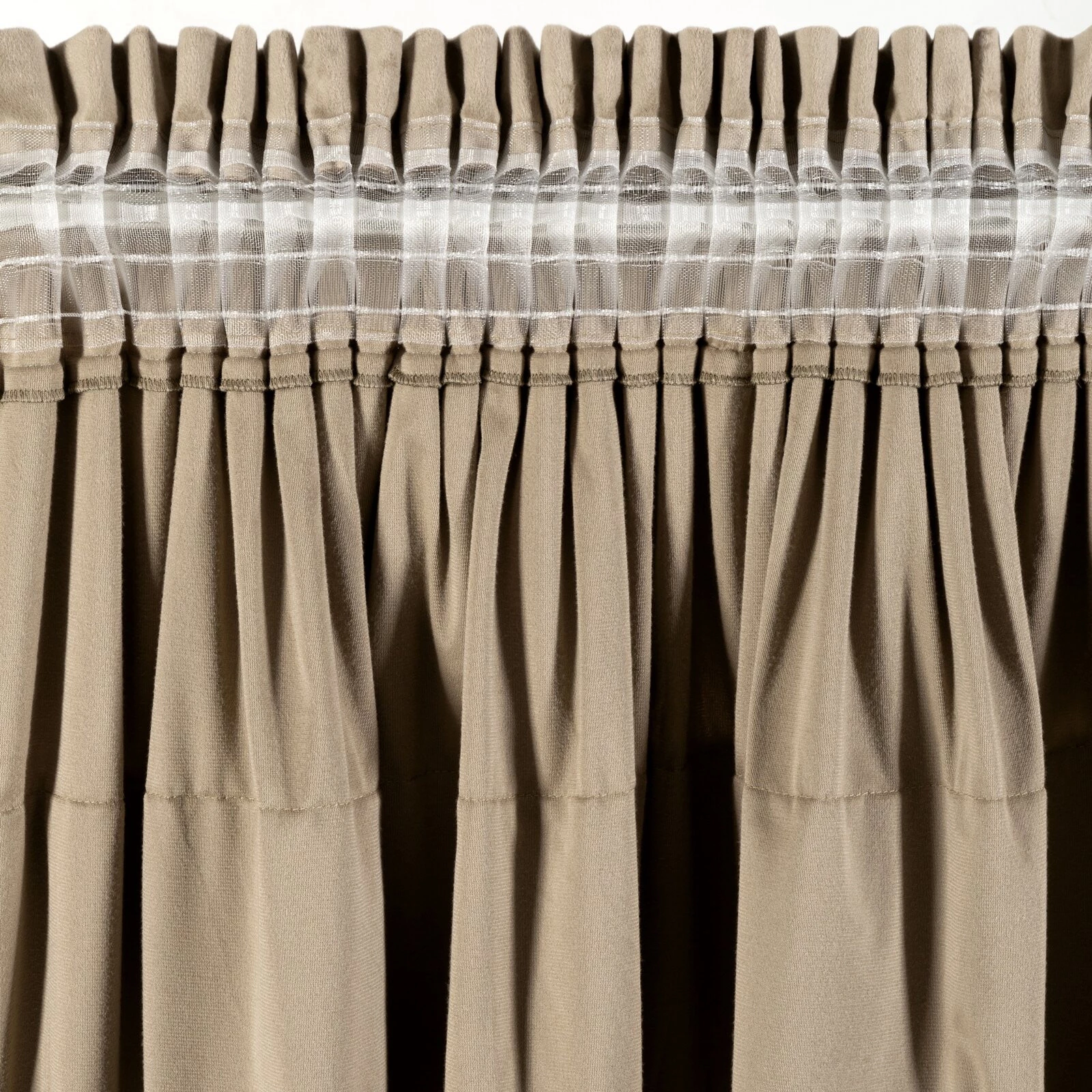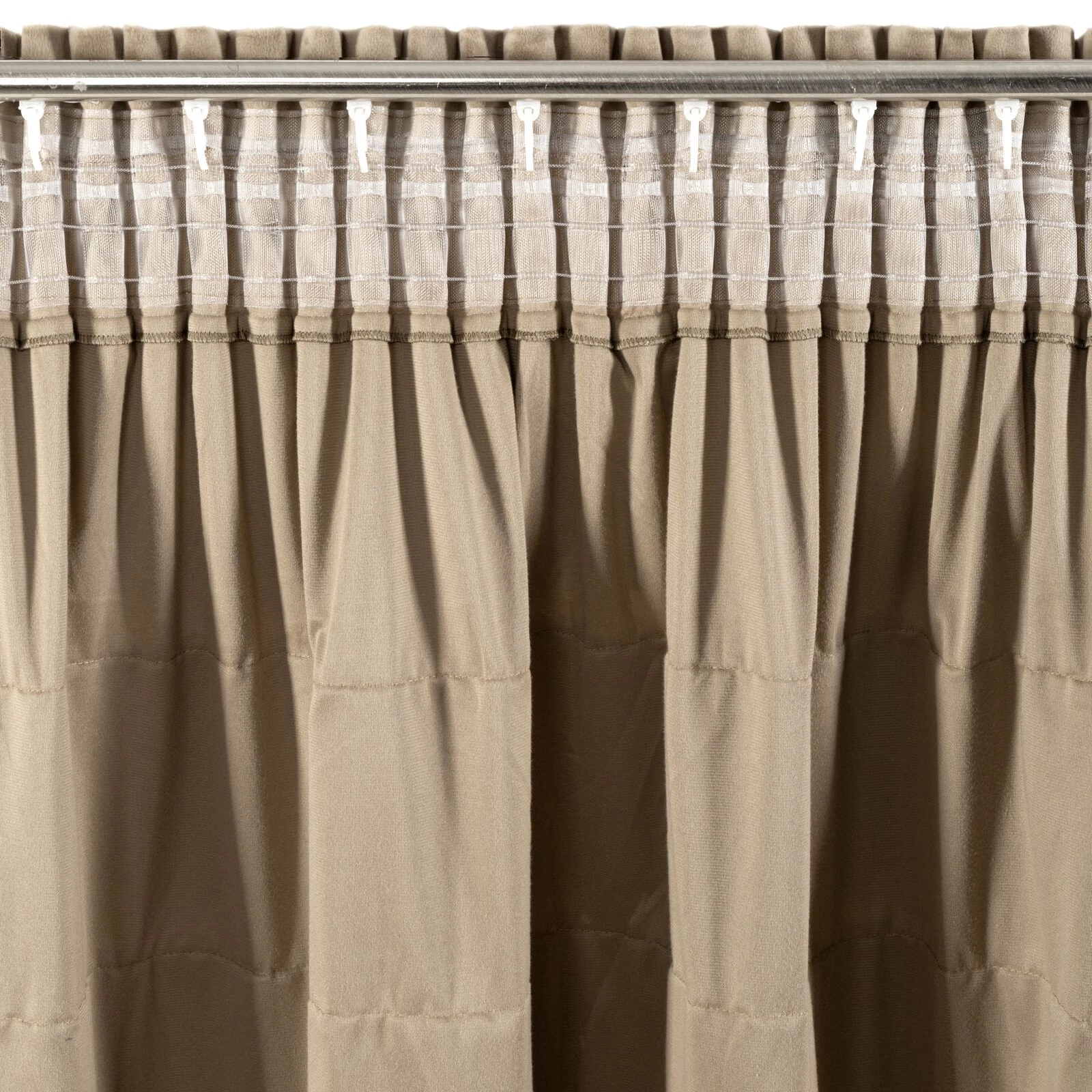 - Zasłona gotowa welwetowa z falbanami od góry szerokość: 140 cm, długość: 270 cm, kolor: ciemnobeżowy, Gramatura: 200 GSM, Skład: 100% poliester