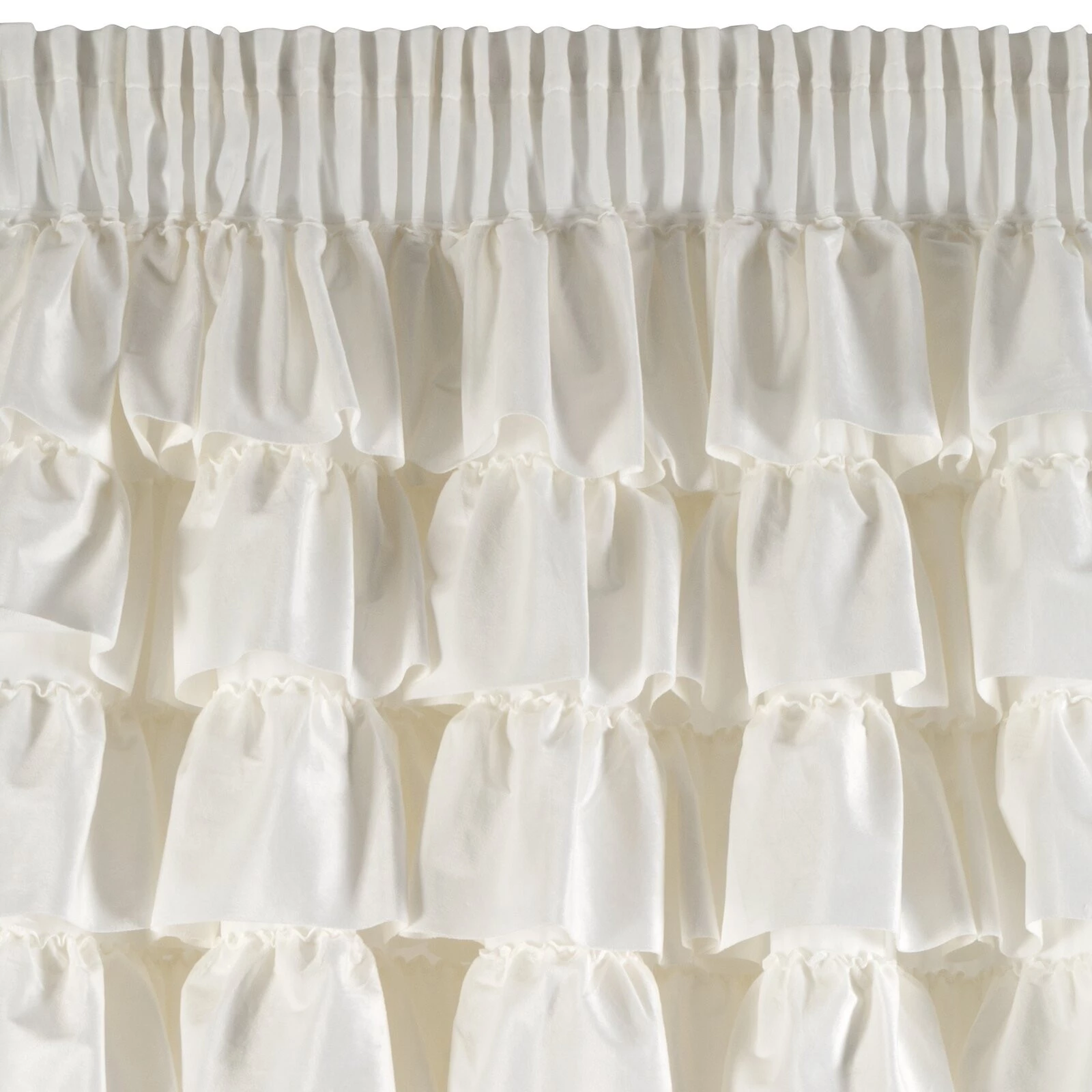 - Zasłona gotowa welwetowa z falbanami od góry szerokość: 140 cm, długość: 270 cm, kolor: biały, Gramatura: 200 GSM, Skład: 100% poliester