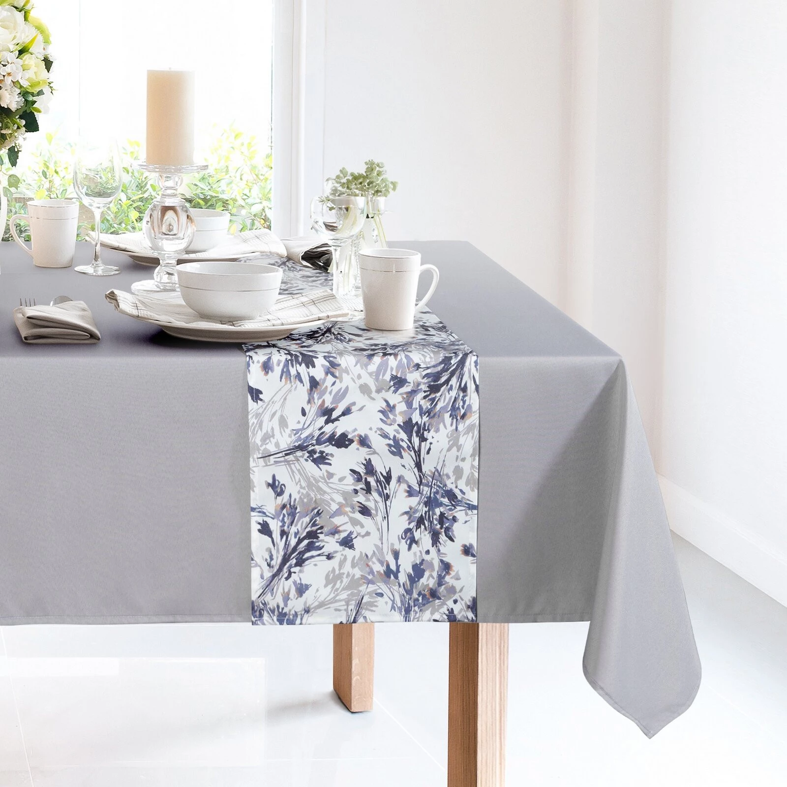 Obrus dekoracyjny z szarfą szerokość: 140 cm, długość: 220 cm, kolor: jasnoszary, Gramatura: 155 GSM, Skład: 100% poliester