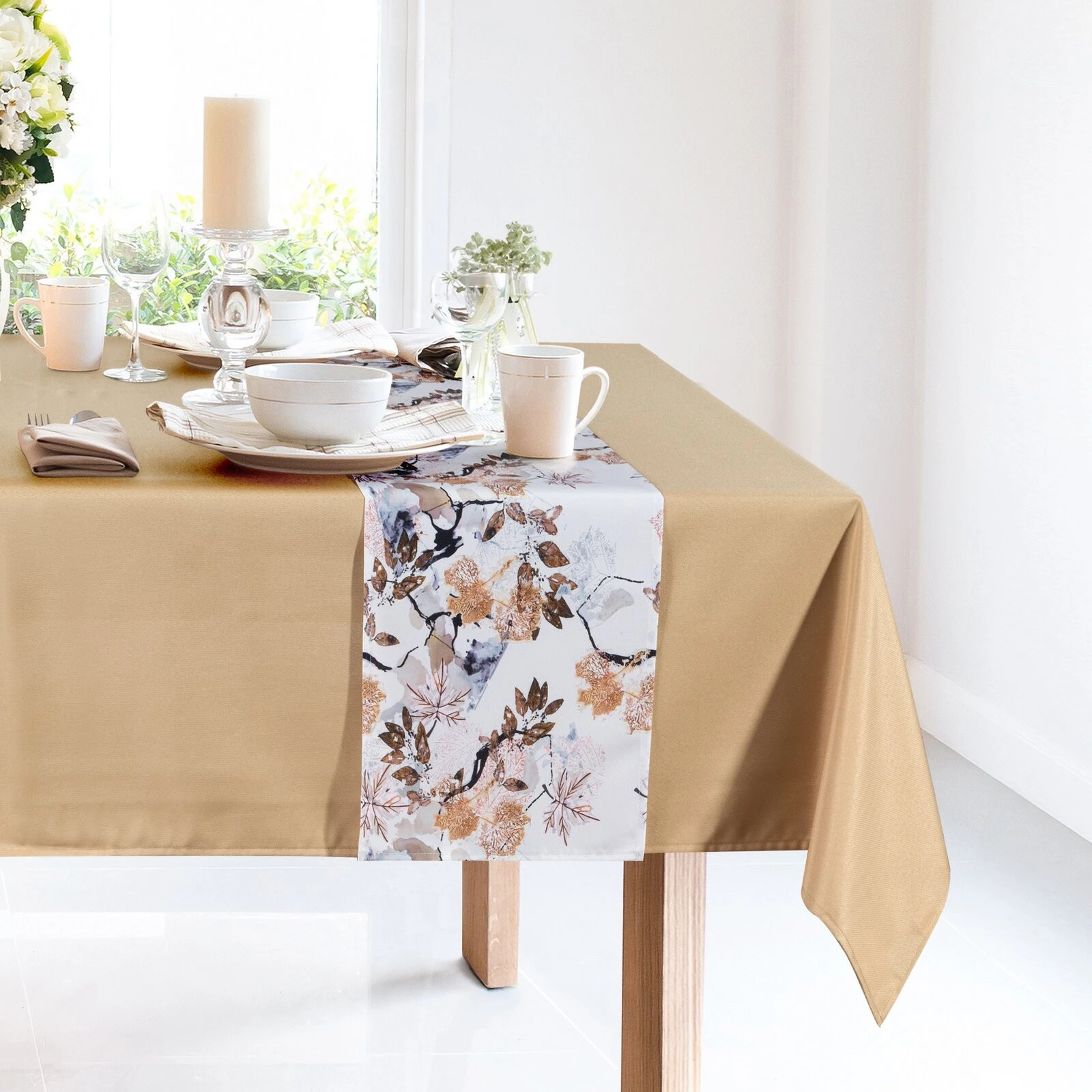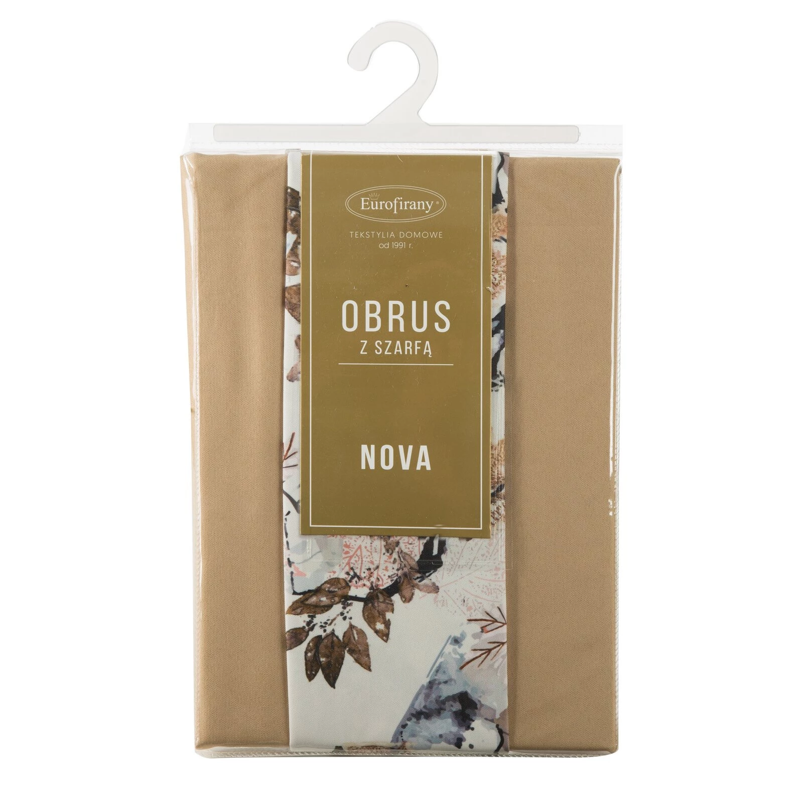 Obrus dekoracyjny z szarfą szerokość: 140 cm, długość: 180 cm, kolor: beżowy, Gramatura: 155 GSM, Skład: 100% poliester