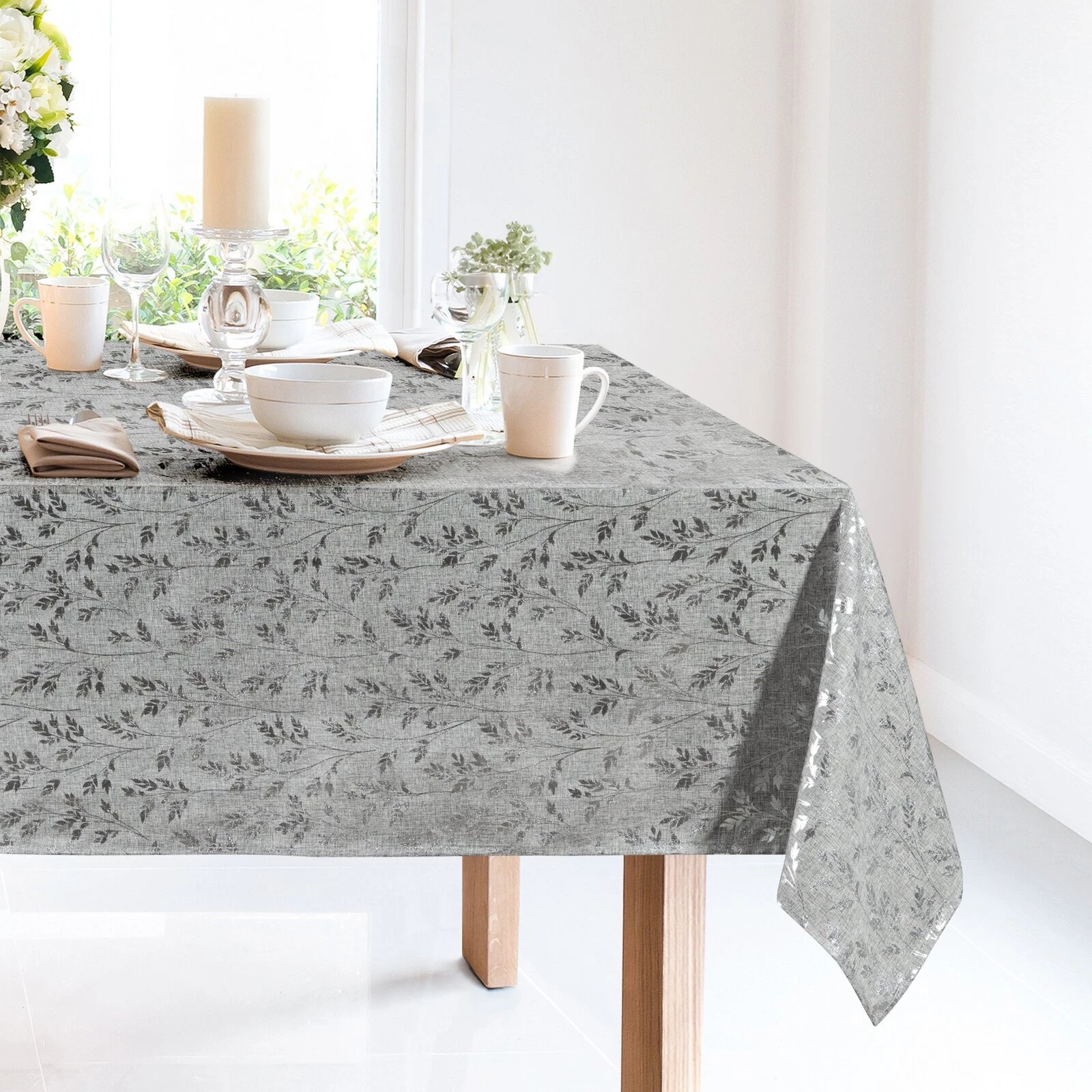 Obrus z błyszczącym nadrukiem szerokość: 140 cm, długość: 260 cm, kolor: srebrny, Gramatura: 155 GSM, Skład: 100% poliester