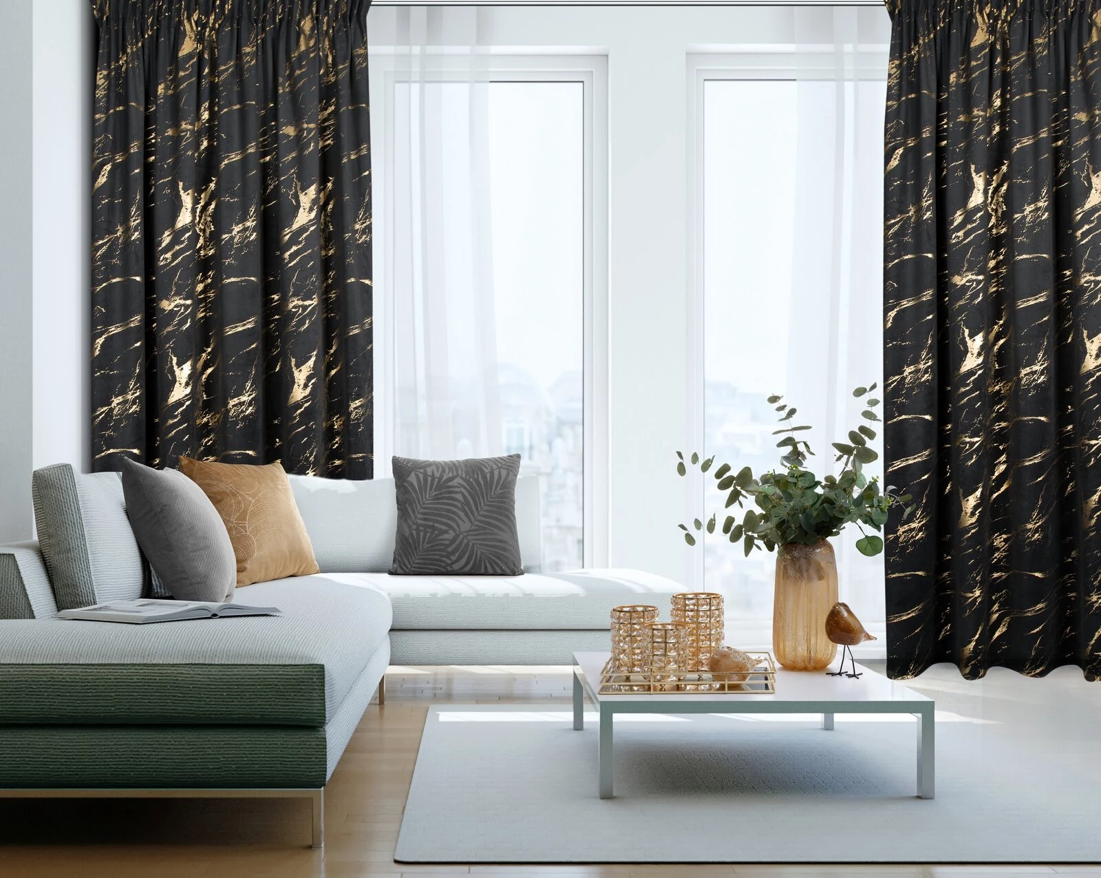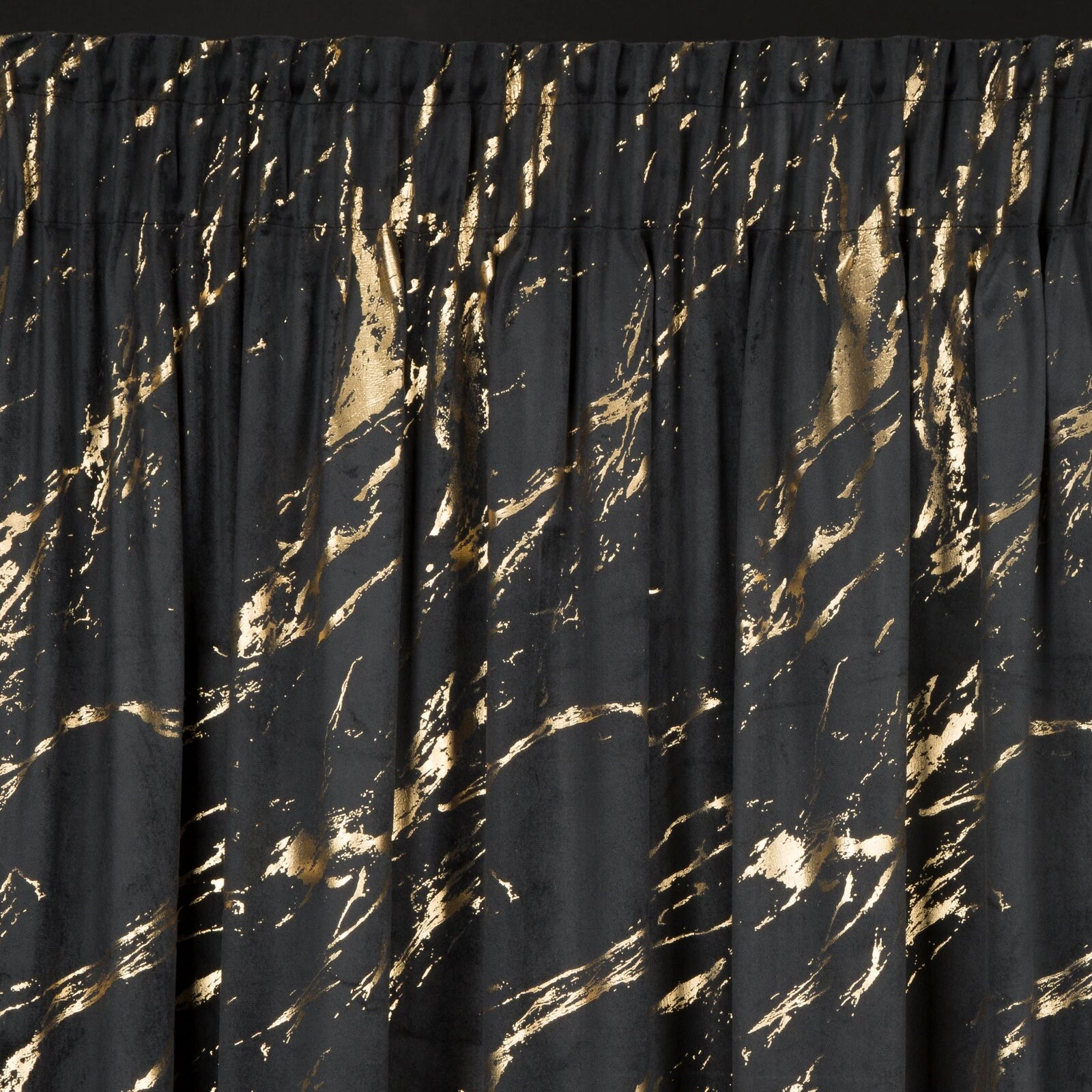 Zasłona gotowa welwetowa z błyszczącym nadrukiem szerokość: 140 cm, długość: 270 cm, kolor: czarny, Gramatura: 200 GSM, Skład: 100% poliester