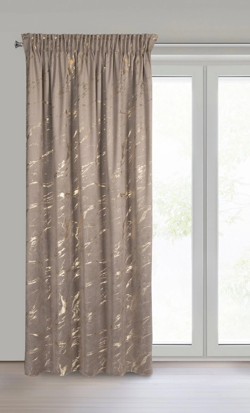 Zasłona gotowa welwetowa z błyszczącym nadrukiem szerokość: 140 cm, długość: 270 cm, kolor: brązowy, Gramatura: 200 GSM, Skład: 100% poliester