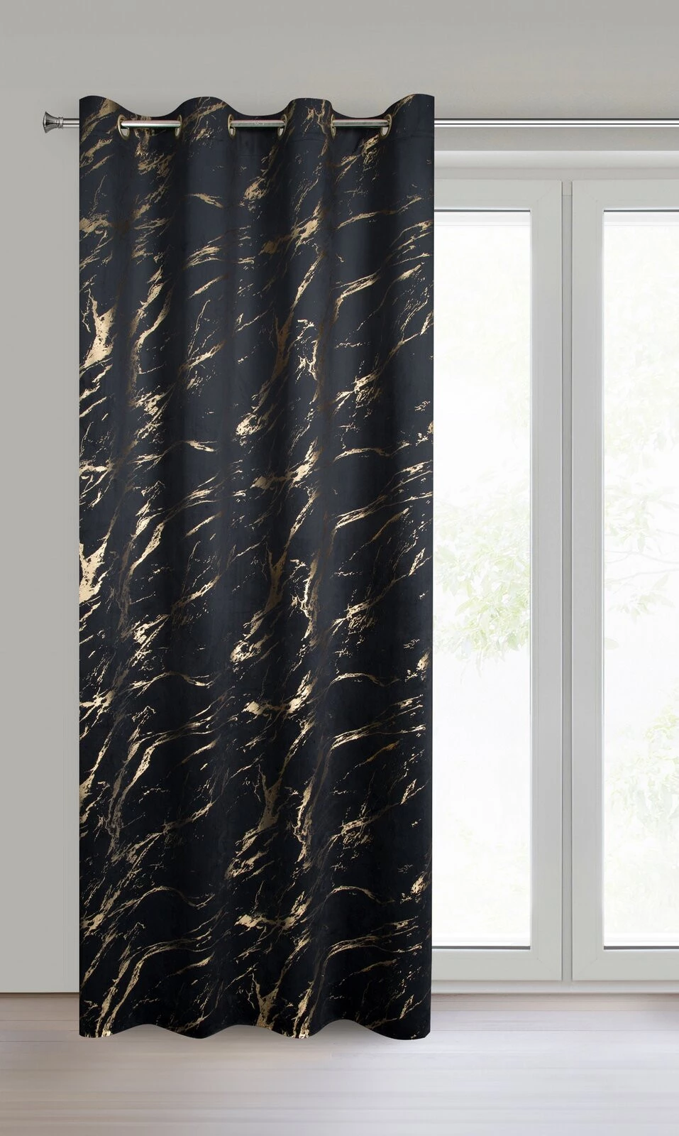 Zasłona gotowa welwetowa z błyszczącym nadrukiem szerokość: 140 cm, długość: 250 cm, kolor: czarny, Gramatura: 200 GSM, Skład: 100% poliester