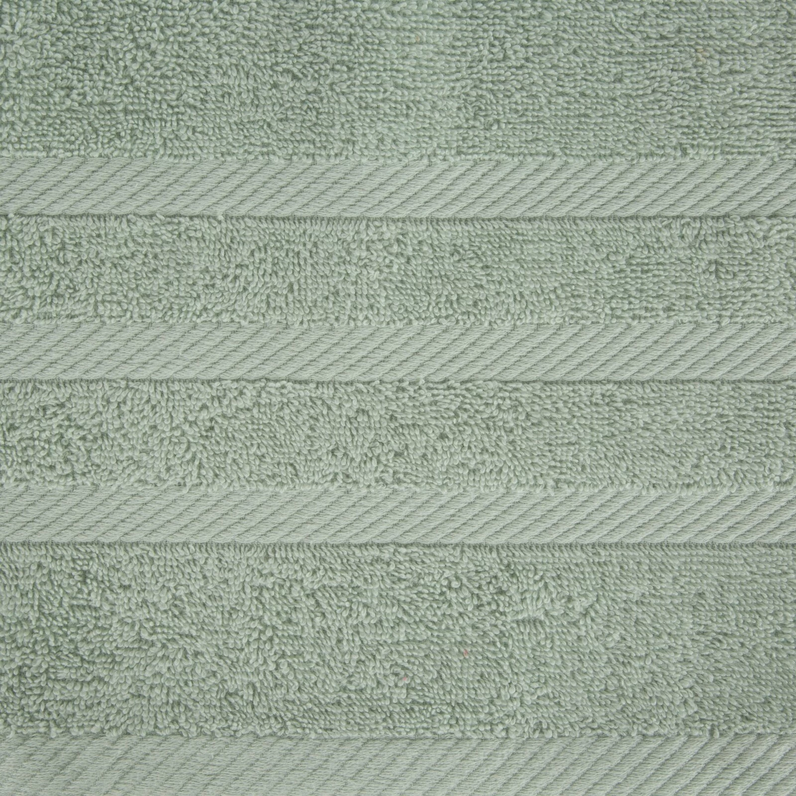 Jednobarwny ręcznik z miękkiej i chłonnej tkaniny bawełnianej o splocie frotte zdobiony kolorową bordiurą w stylu fastrygi. Łatwy w praniu, nie farbuje. szerokość: 100 cm, długość: 150 cm, kolor: jasnomiętowy, Gramatura: 500 GSM, Skład: 100% bawełna