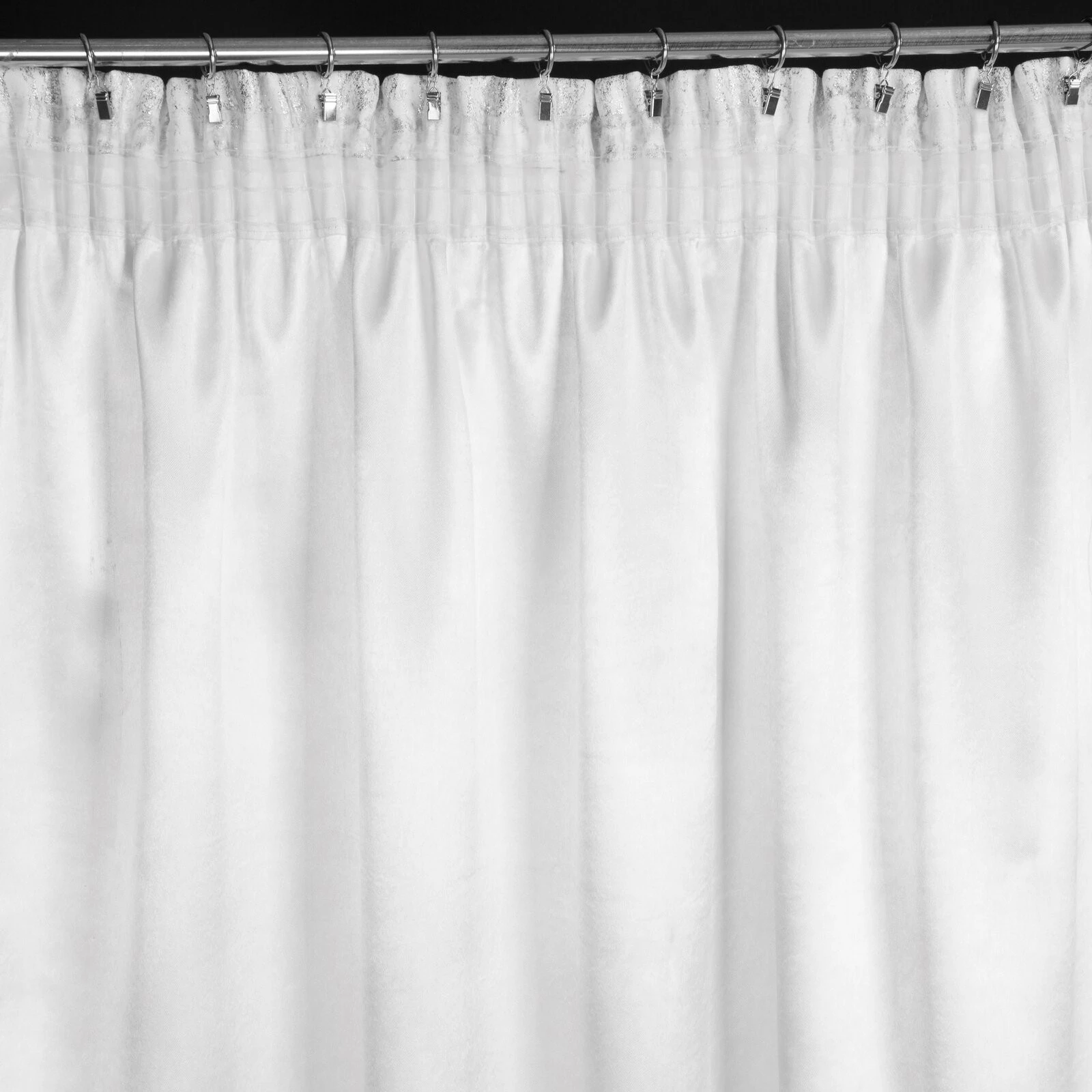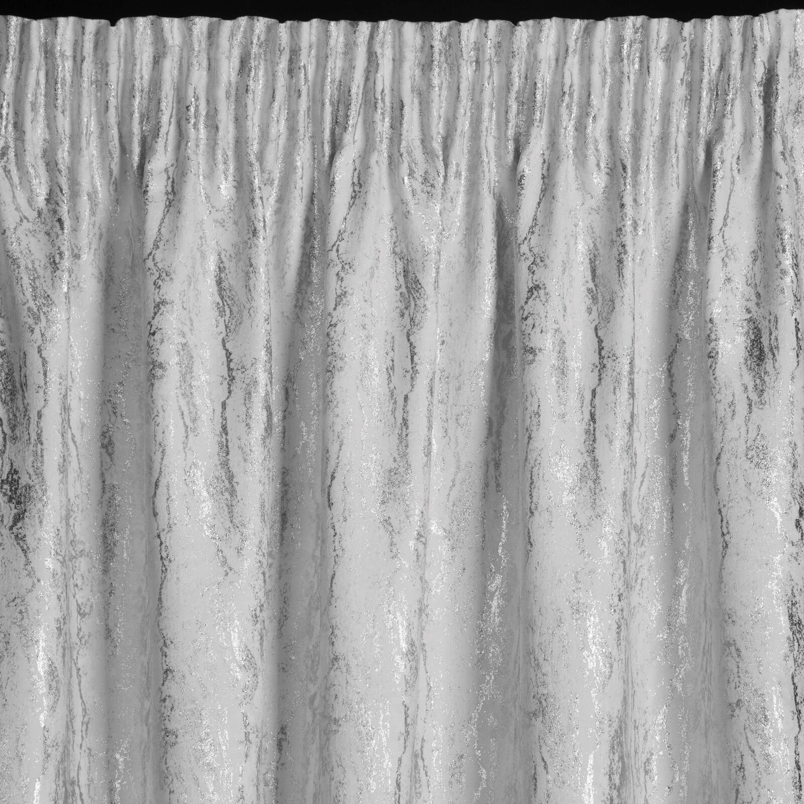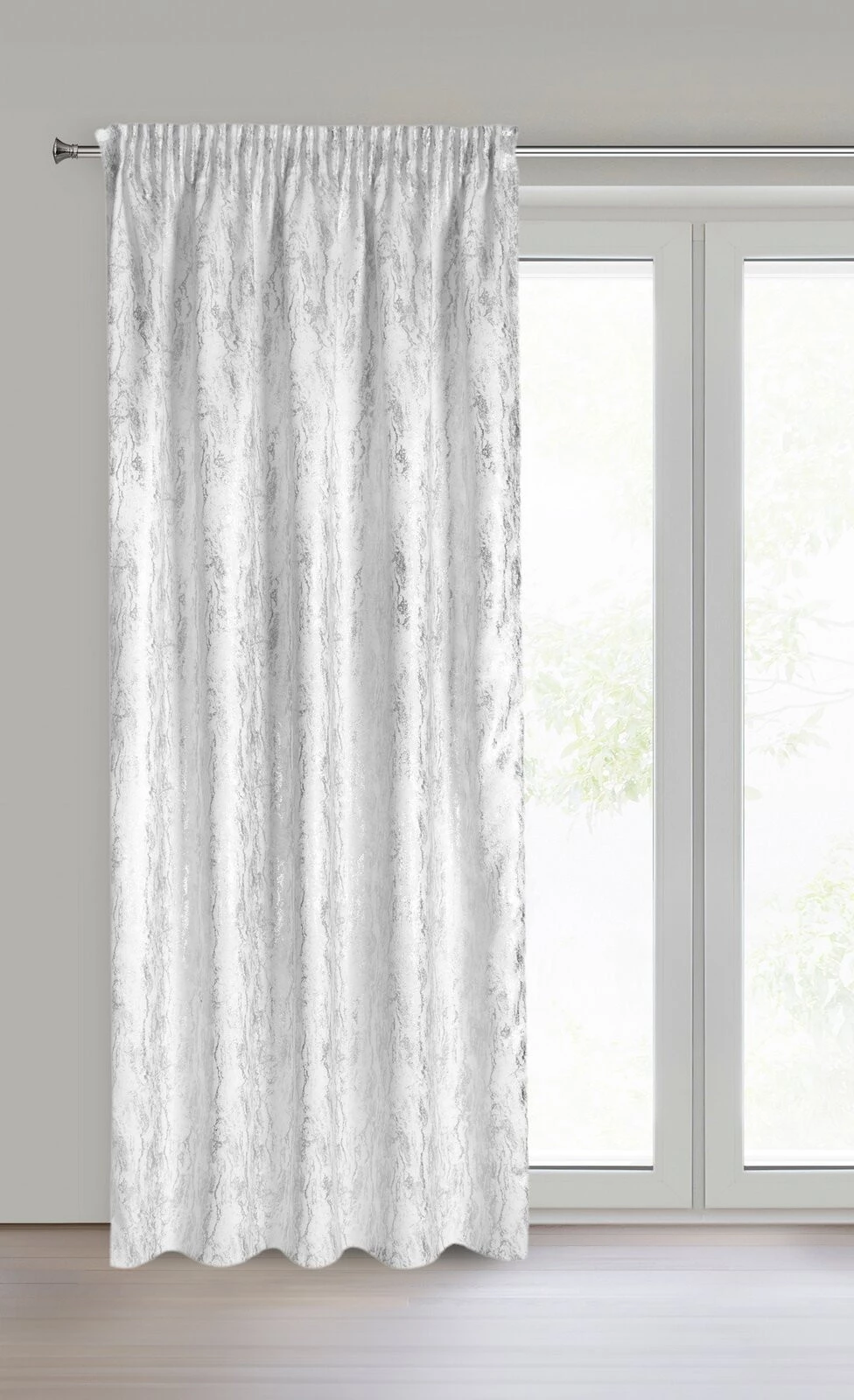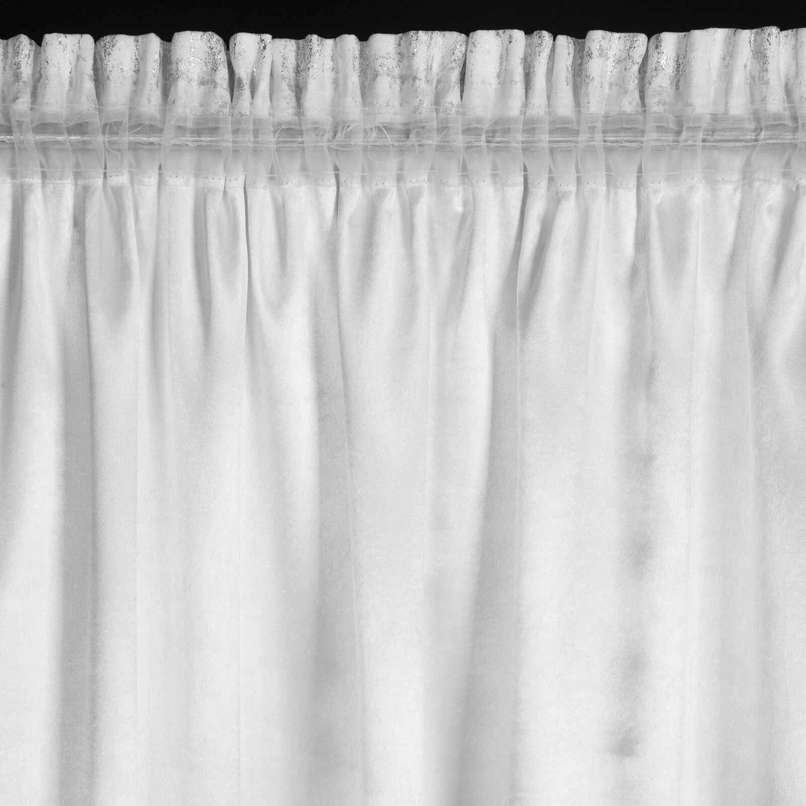 Zasłona gotowa zaciemniająca z nadrukiem błyszczącym szerokość: 140 cm, długość: 270 cm, kolor: biały, Gramatura: 230 GSM, Skład: 100% poliester