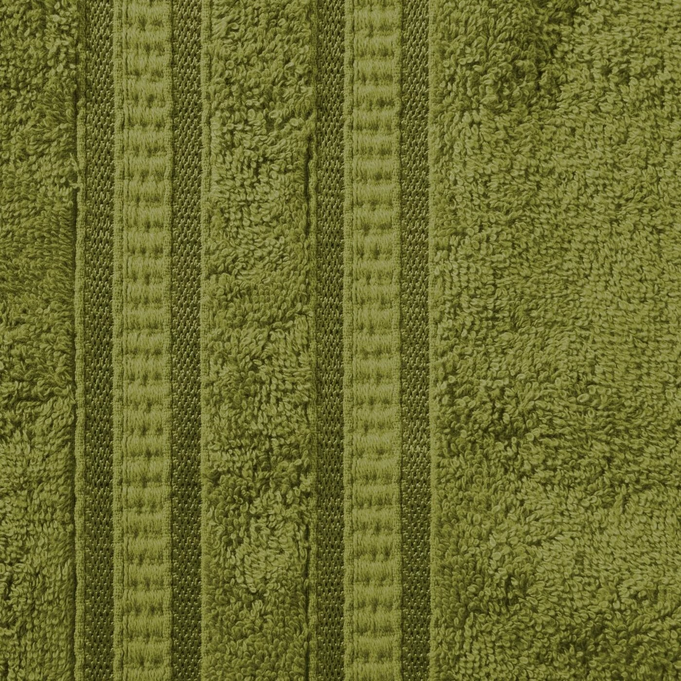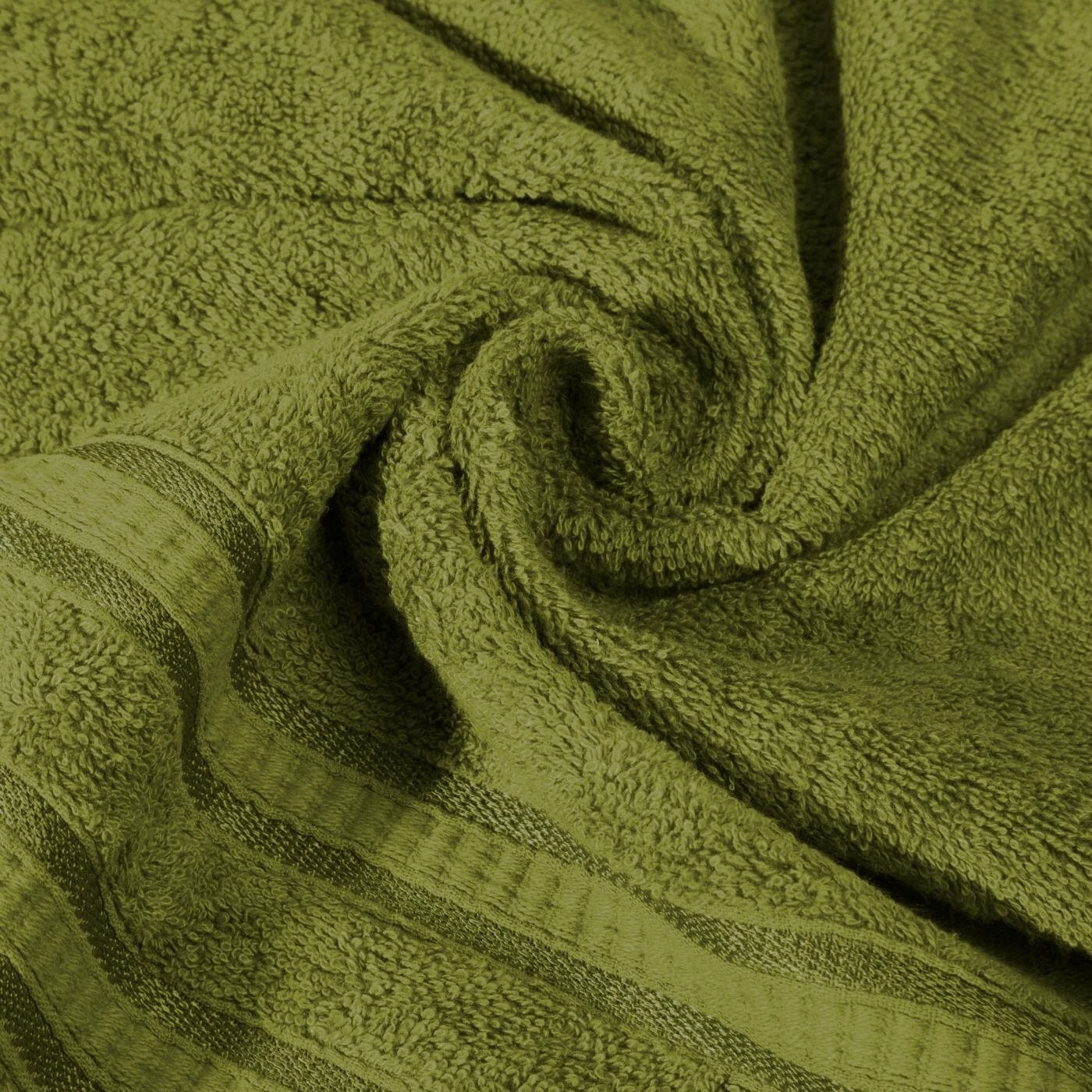 Ręcznik bawełniany z ozdobną bordiurą szerokość: 70 cm, długość: 140 cm, kolor: oliwkowy, Gramatura: 500 GSM, Skład: 100% wiskoza z włókna bambusowego; część ozdobna: 100% bawełna