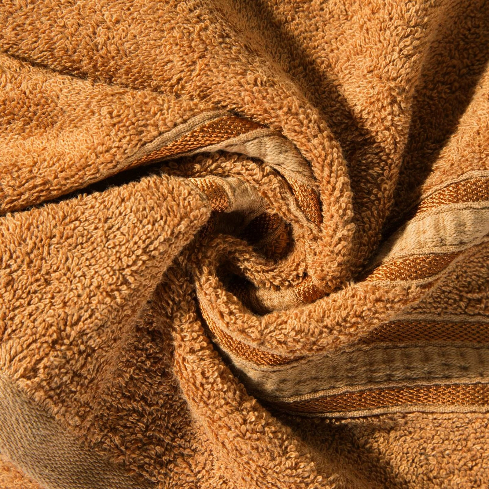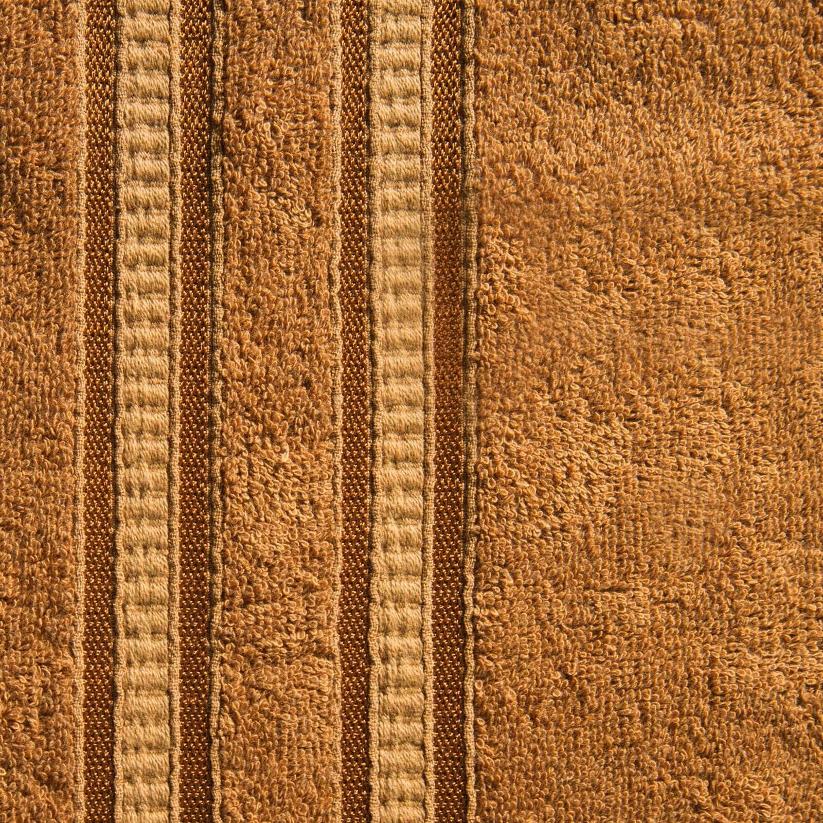 Ręcznik bawełniany z ozdobną bordiurą szerokość: 70 cm, długość: 140 cm, kolor: brązowy, Gramatura: 500 GSM, Skład: 100% wiskoza z włókna bambusowego; część ozdobna: 100% bawełna