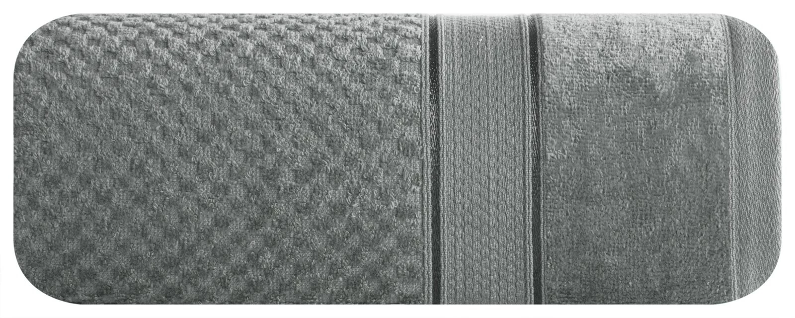 Ręcznik welurowy z prostą bordiurą i frotte ze strukturą szerokość: 30 cm, długość: 50 cm, kolor: stalowy, Gramatura: 500 GSM, Skład: 100% bawełna; część ozdobna: 99% bawełna, 1% wiskoza