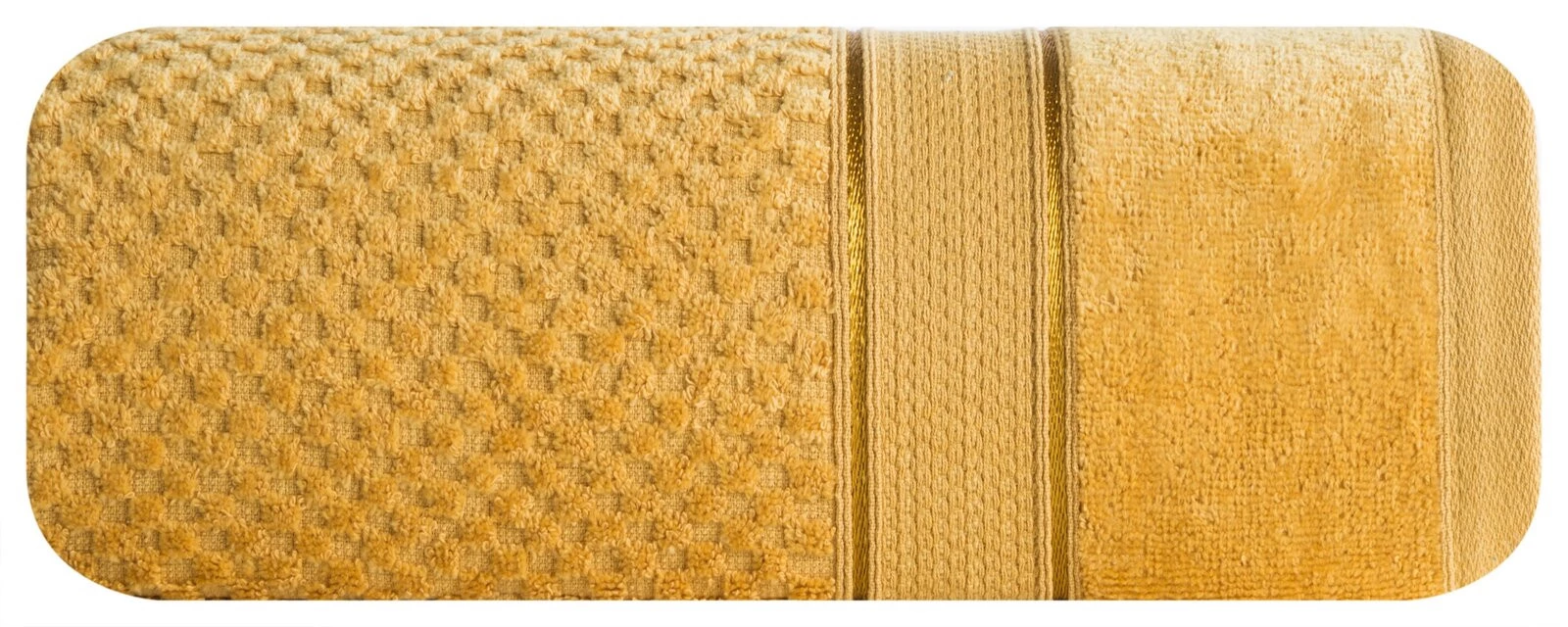 Ręcznik welurowy z prostą bordiurą i frotte ze strukturą szerokość: 50 cm, długość: 90 cm, kolor: musztardowy, Gramatura: 500 GSM, Skład: 100% bawełna; część ozdobna: 99% bawełna, 1% wiskoza