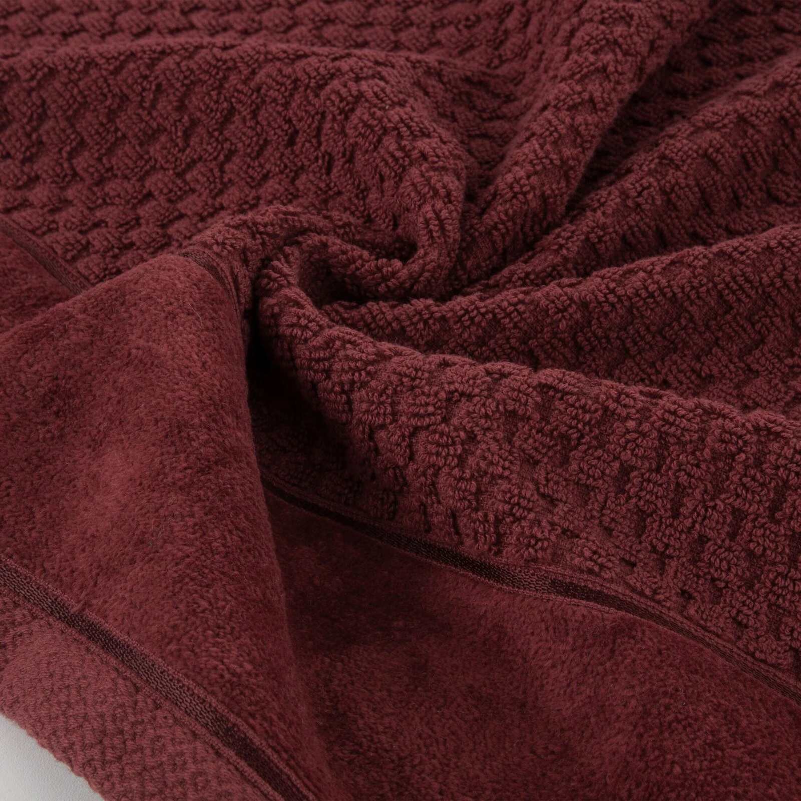 Ręcznik z szeroką welurową bordiurą szerokość: 30 cm, długość: 50 cm, kolor: bordowy, Gramatura: 500 GSM, Skład: 100% bawełna; część ozdobna: 95% bawełna, 5% poliester
