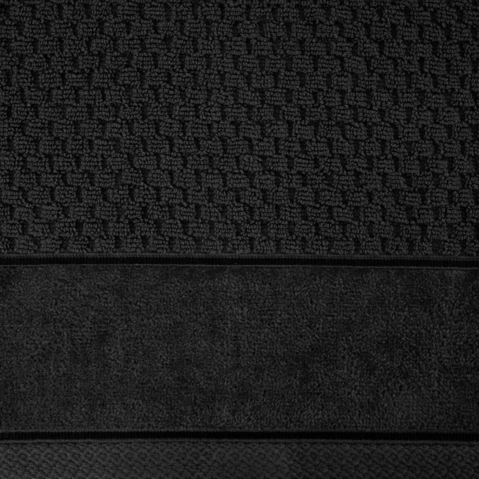 Ręcznik z szeroką welurową bordiurą szerokość: 50 cm, długość: 90 cm, kolor: czarny, Gramatura: 500 GSM, Skład: 100% bawełna; część ozdobna: 95% bawełna, 5% poliester