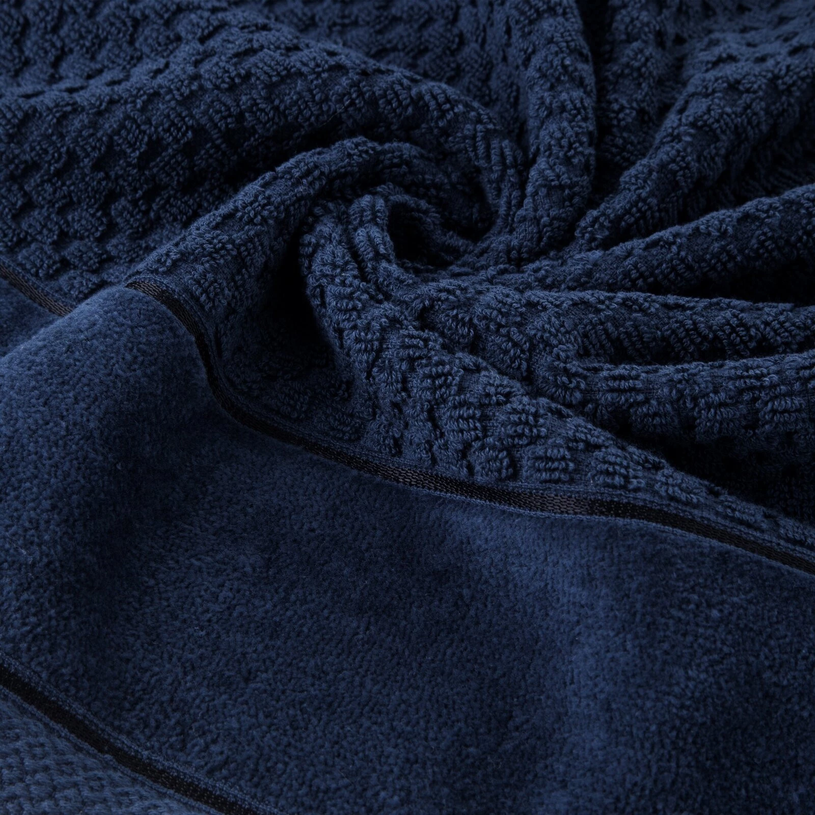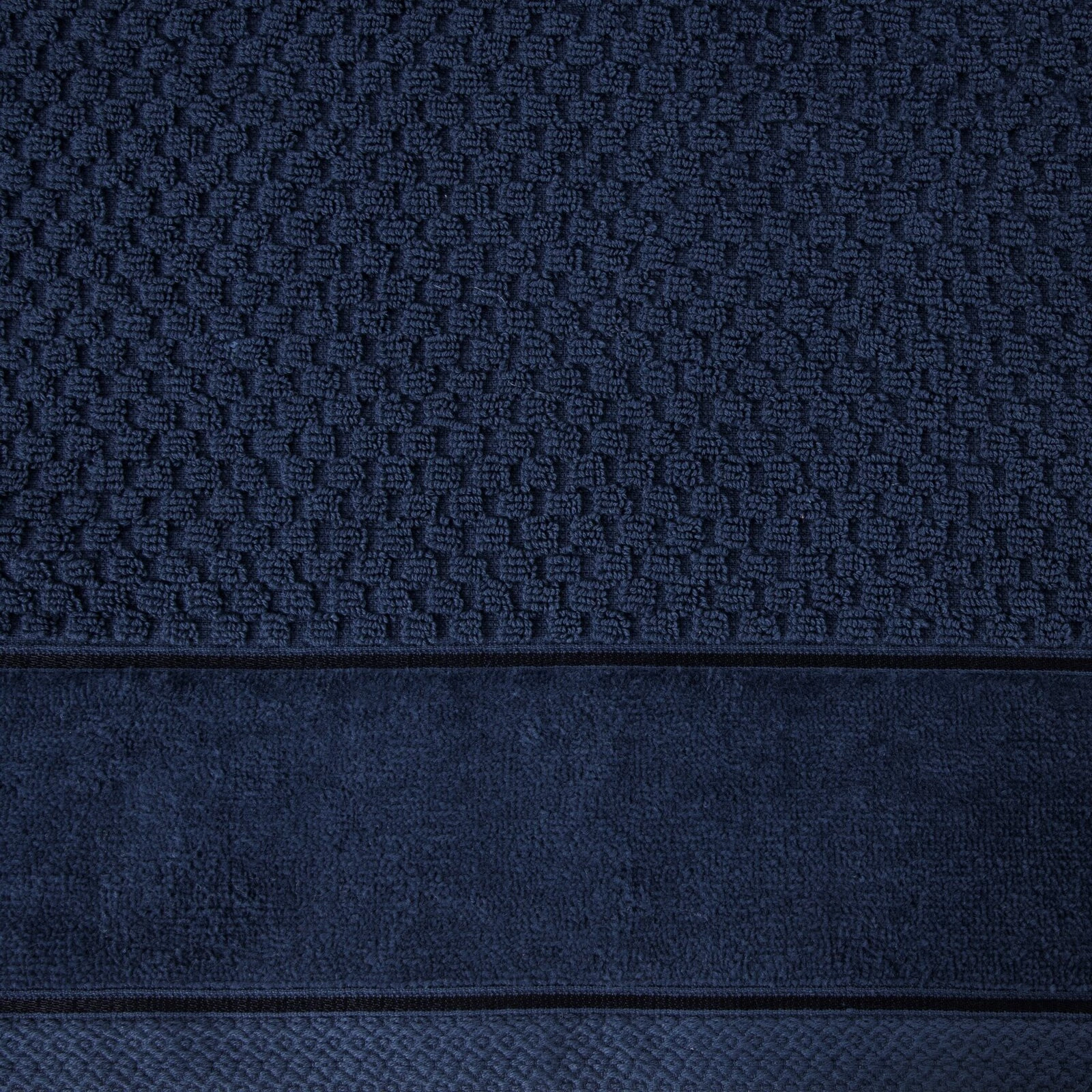 Ręcznik z szeroką welurową bordiurą szerokość: 50 cm, długość: 90 cm, kolor: granatowy, Gramatura: 500 GSM, Skład: 100% bawełna; część ozdobna: 95% bawełna, 5% poliester