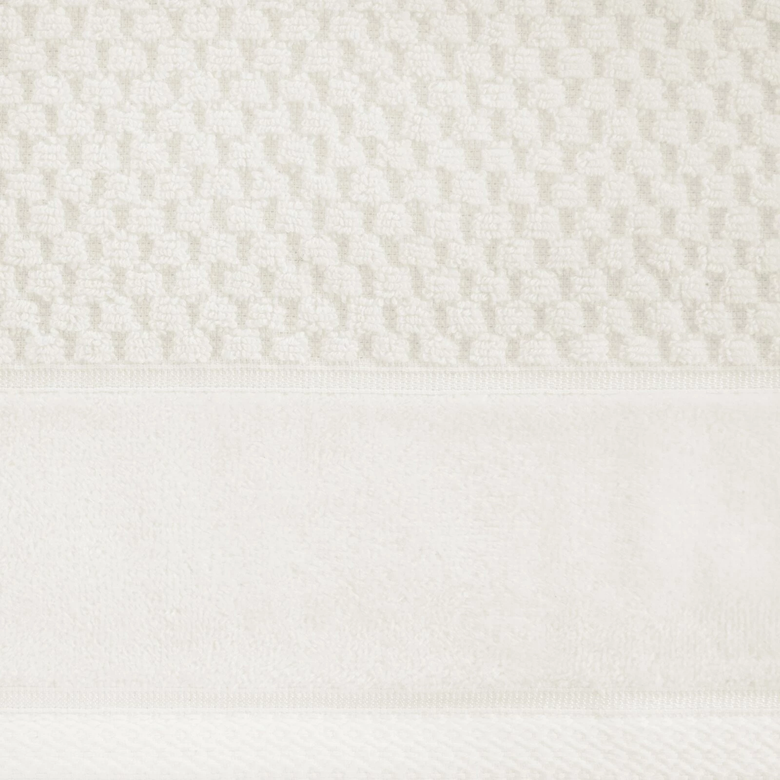Ręcznik z szeroką welurową bordiurą szerokość: 70 cm, długość: 140 cm, kolor: kremowy, Gramatura: 500 GSM, Skład: 100% bawełna; część ozdobna: 95% bawełna, 5% poliester