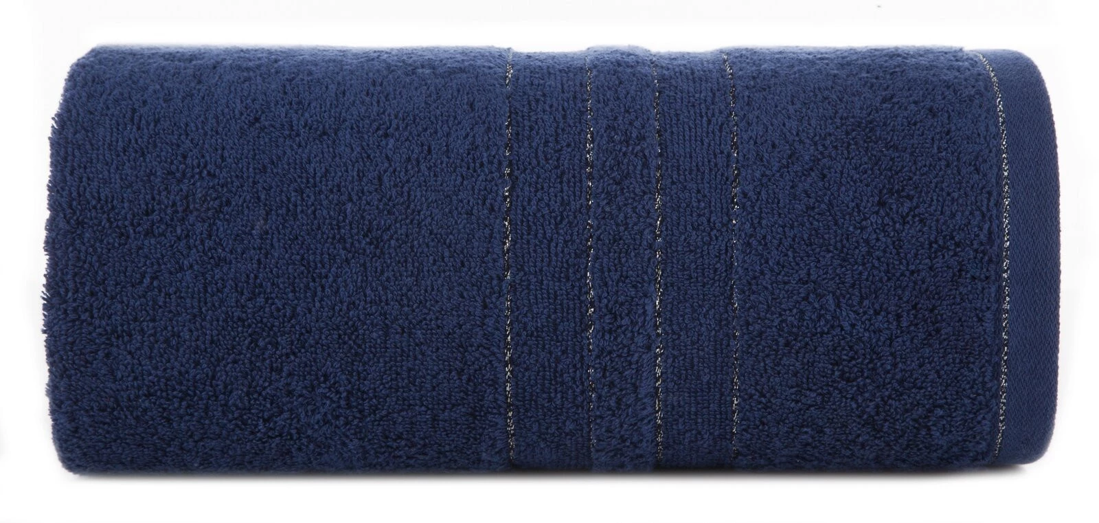 Ręcznik bawełniany z bordiurą zdobioną błyszczącą nicią szerokość: 30 cm, długość: 50 cm, kolor: granatowy, Gramatura: 500 GSM, Skład: 100% bawełna; część ozdobna: 95% bawełna, 5% poliester