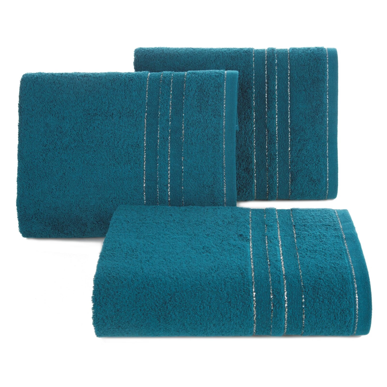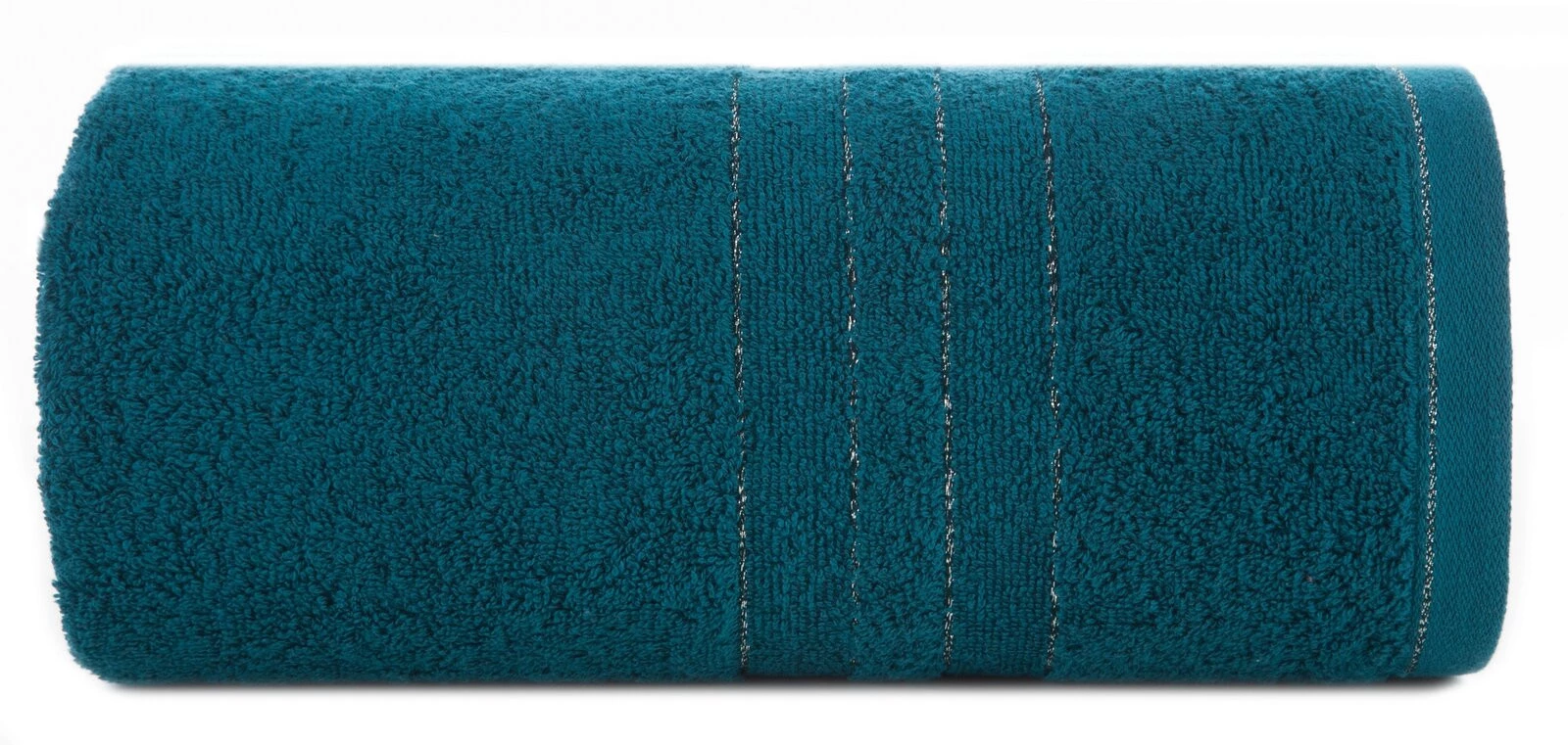 Ręcznik bawełniany z bordiurą zdobioną błyszczącą nicią szerokość: 50 cm, długość: 90 cm, kolor: turkusowy, Gramatura: 500 GSM, Skład: 100% bawełna; część ozdobna: 95% bawełna, 5% poliester