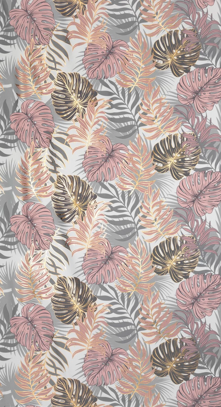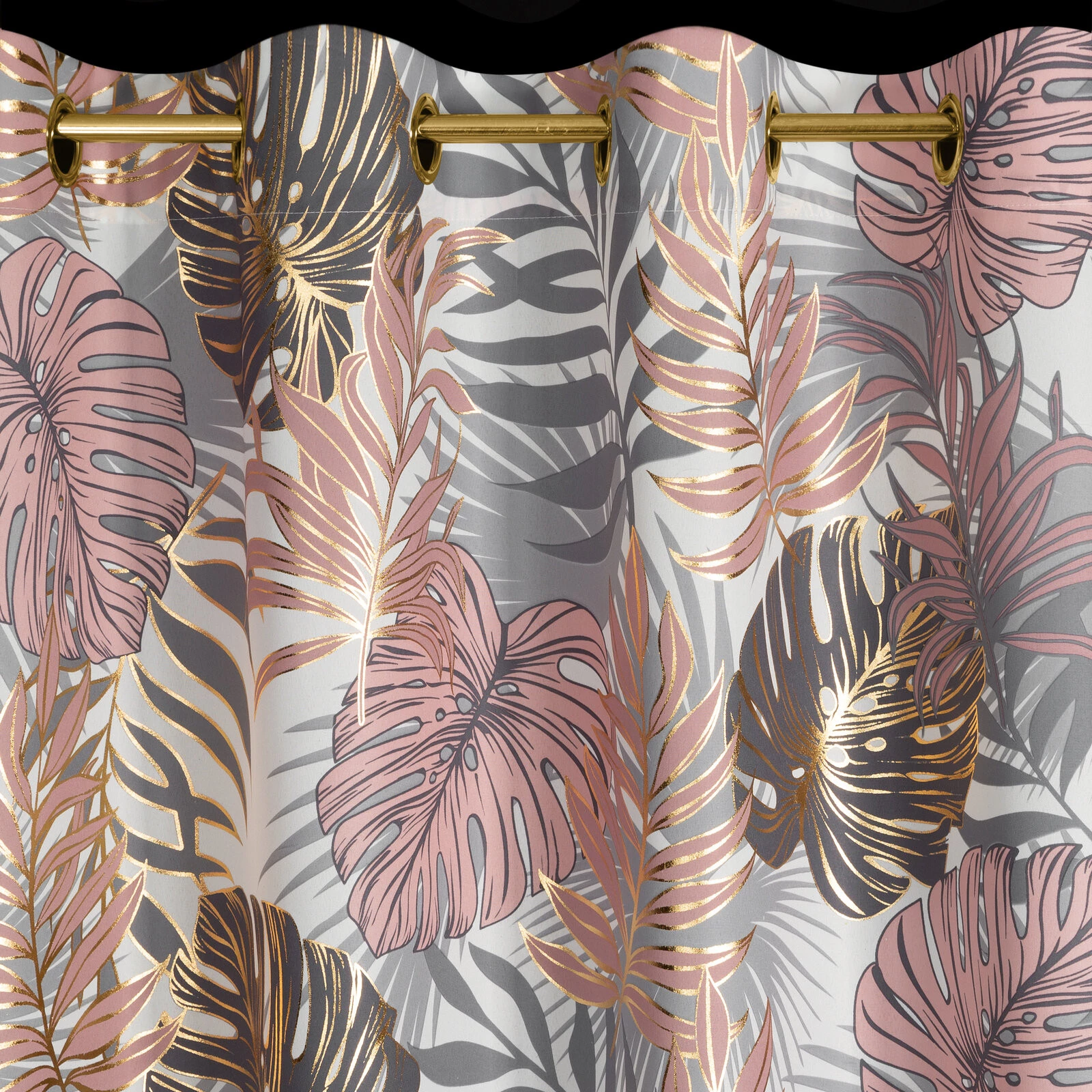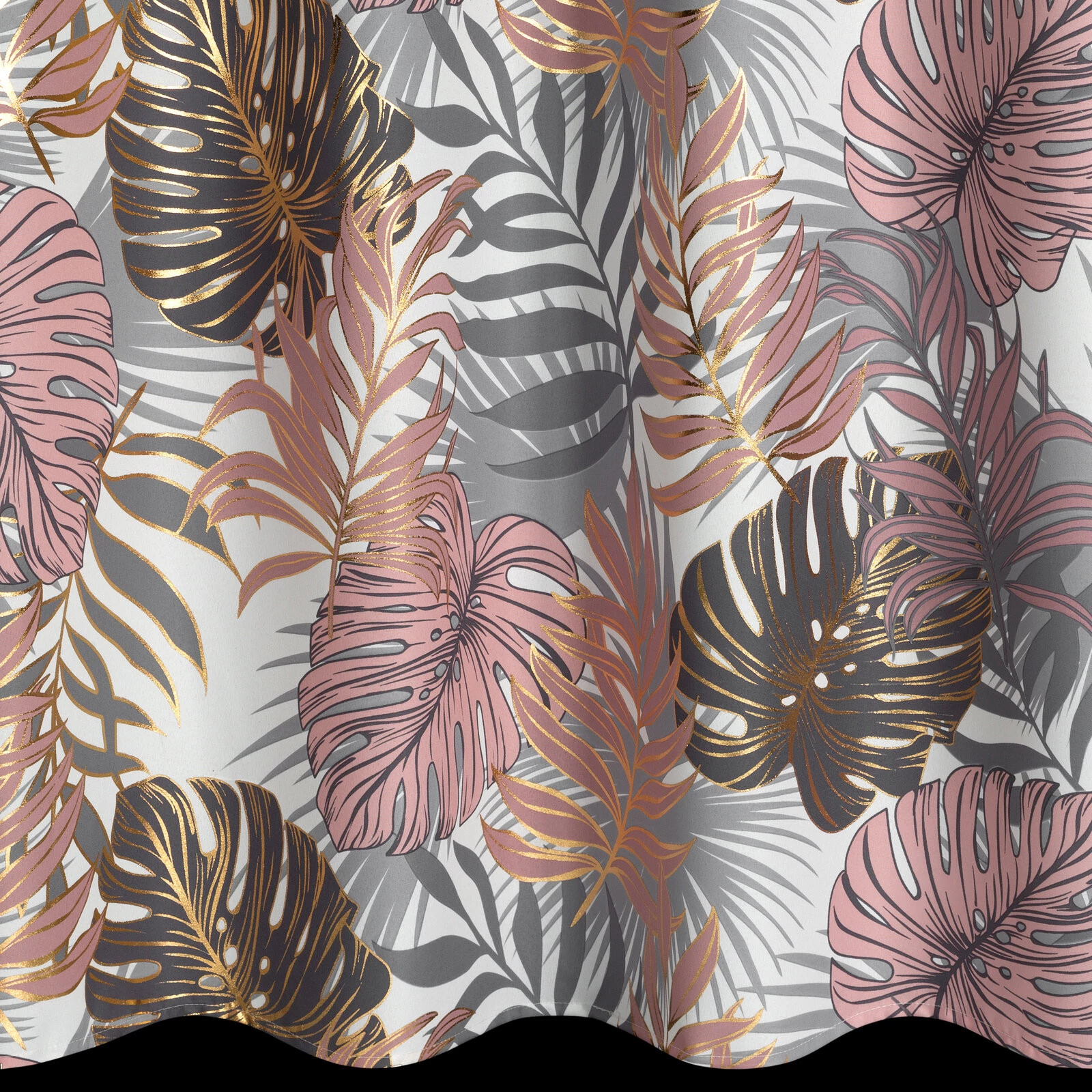 - Zasłona z motywem botanicznym z błyszczącym nadrukiem szerokość: 140 cm, długość: 250 cm, kolor: pudrowy róż, Gramatura: 135 GSM, Skład: 100% poliester