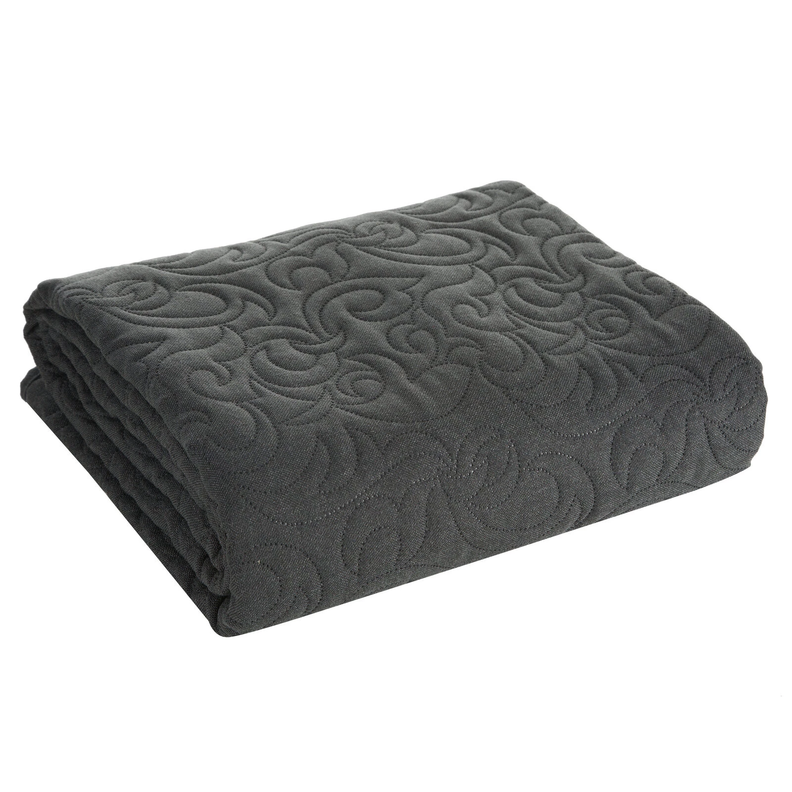 Narzuta hot press imitująca len szerokość: 170 cm, długość: 210 cm, kolor: grafitowy, Gramatura: 185 GSM, Skład: 100% poliester