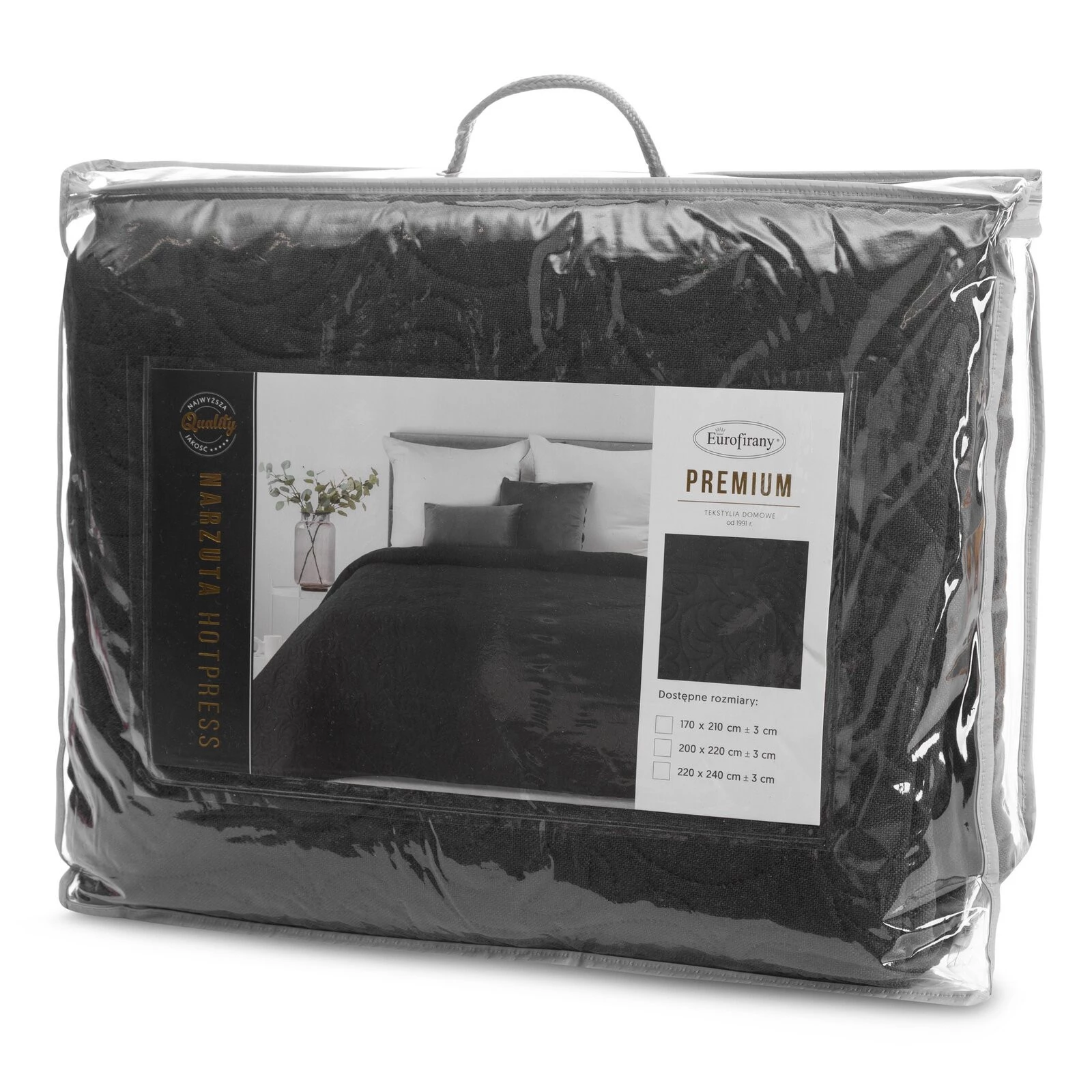 - Narzuta hot press imitująca len szerokość: 170 cm, długość: 210 cm, kolor: grafitowy, Gramatura: 185 GSM, Skład: 100% poliester