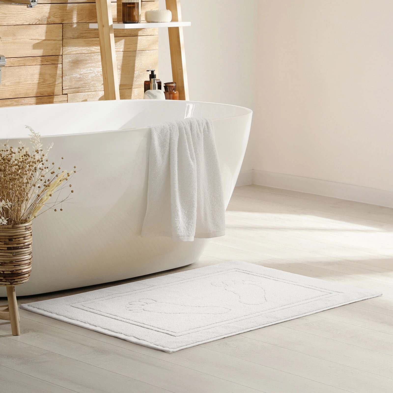 - Dywanik łazienkowy szerokość: 50 cm, długość: 70 cm, kolor: biały, Gramatura: 650 GSM, Skład: 100% bawełna