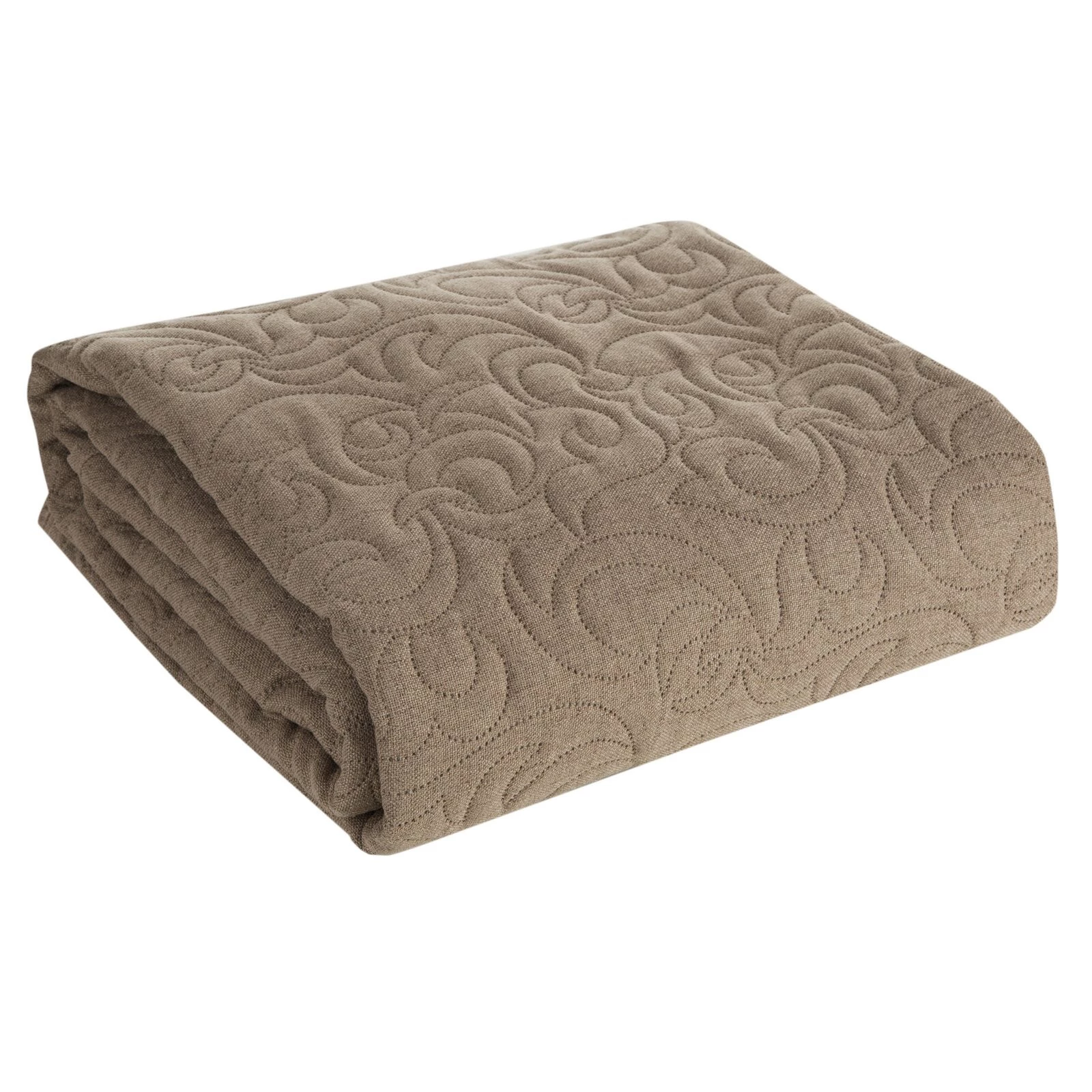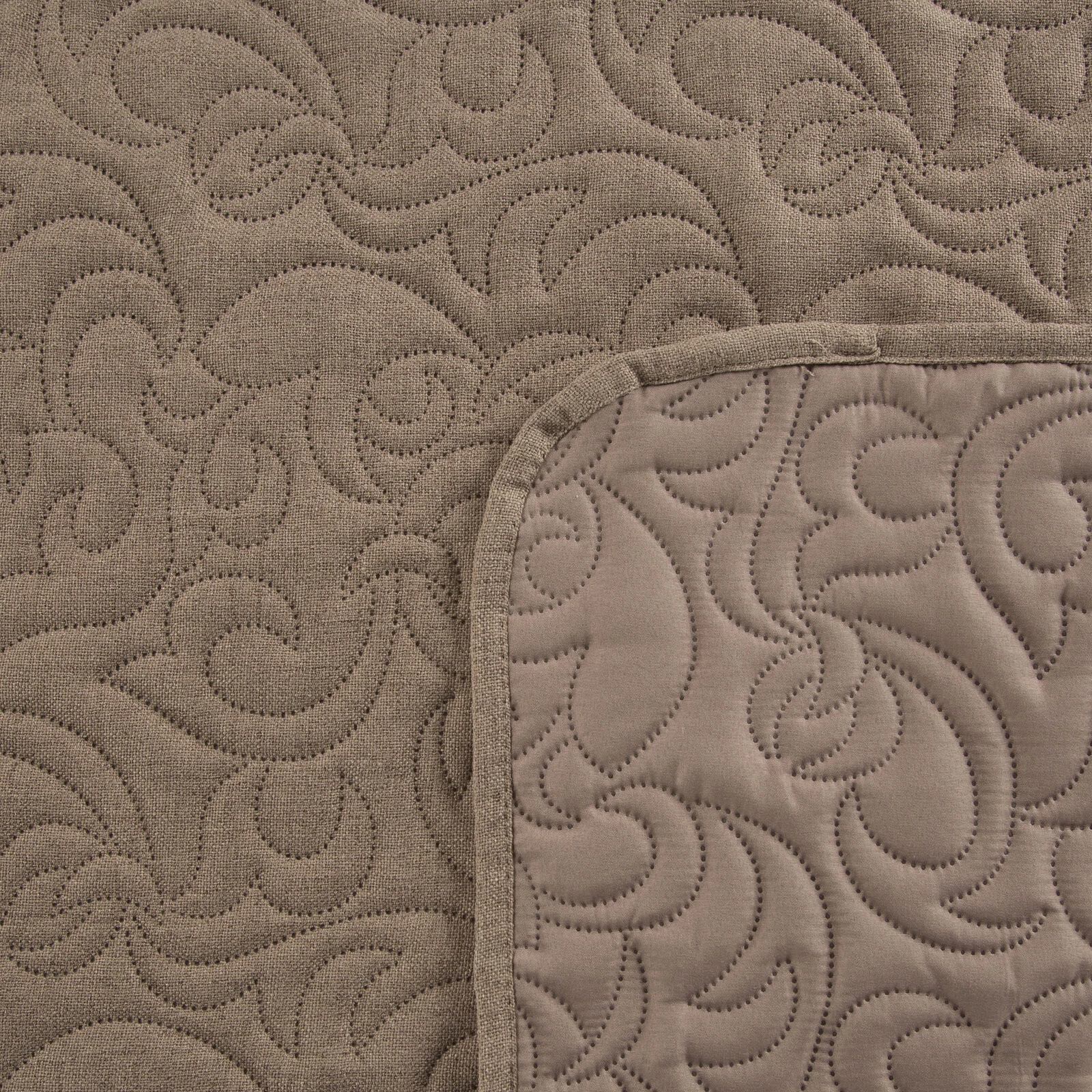 Narzuta hot press imitująca len szerokość: 220 cm, długość: 240 cm, kolor: brązowy, Gramatura: 185 GSM, Skład: 100% poliester