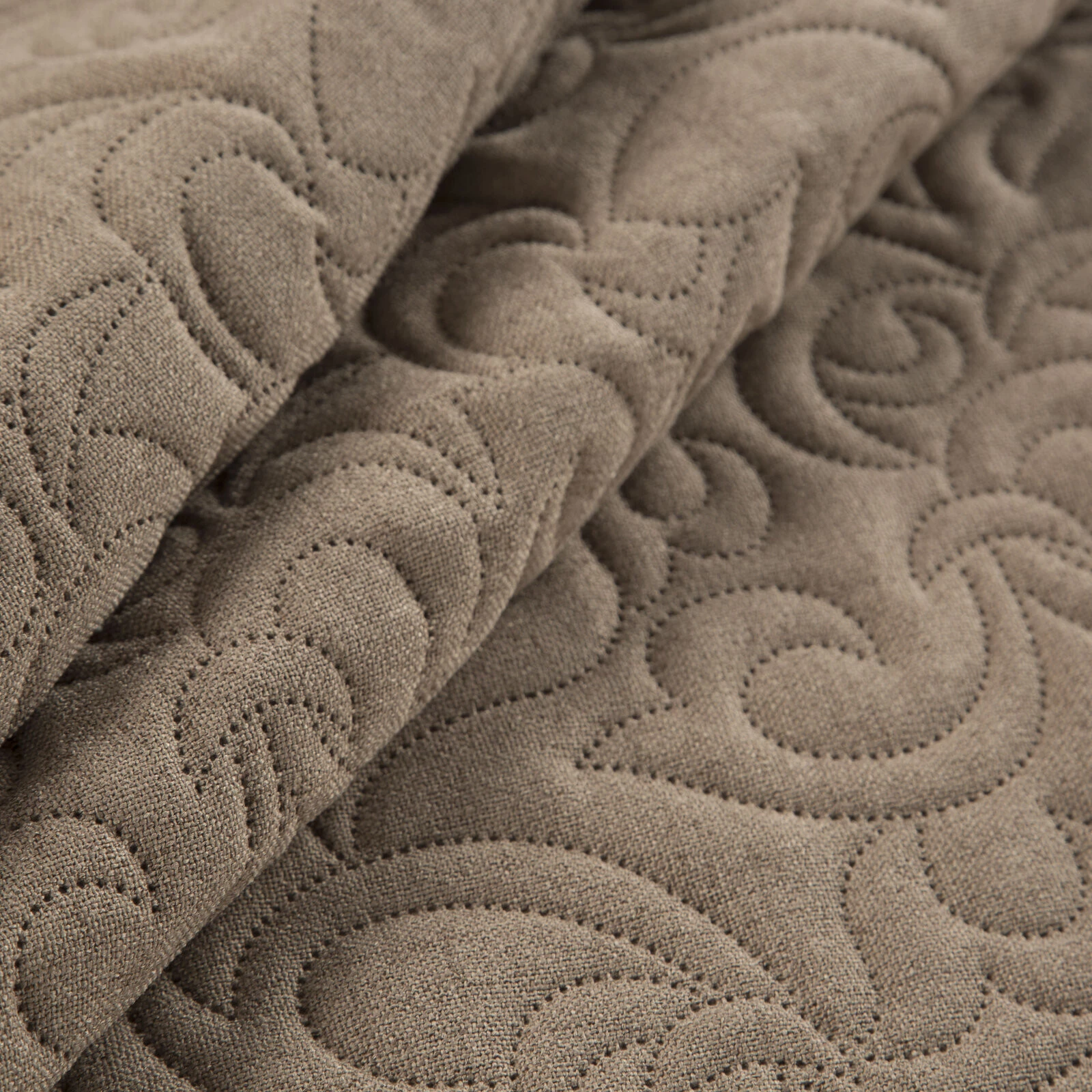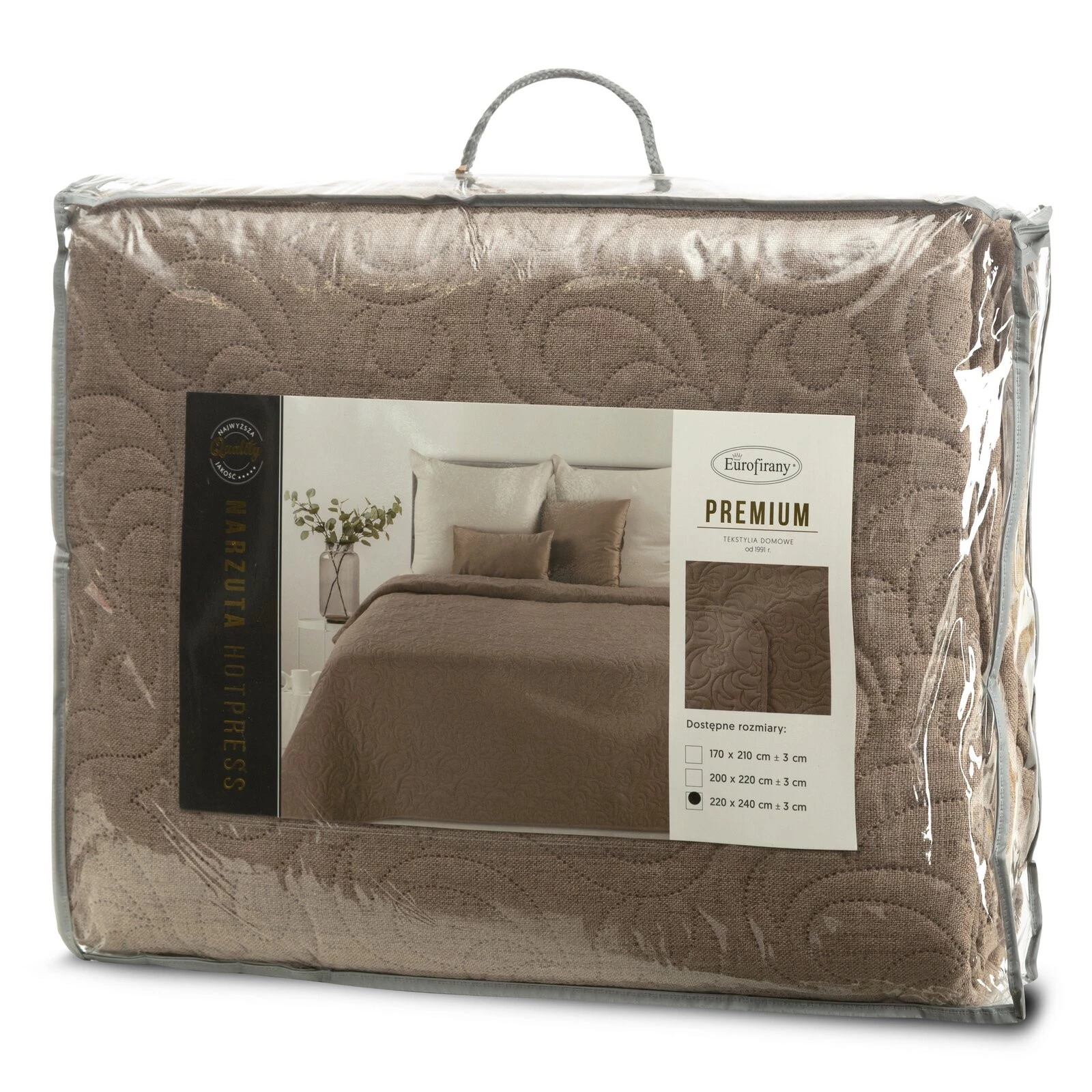 - Narzuta hot press imitująca len szerokość: 220 cm, długość: 240 cm, kolor: brązowy, Gramatura: 185 GSM, Skład: 100% poliester