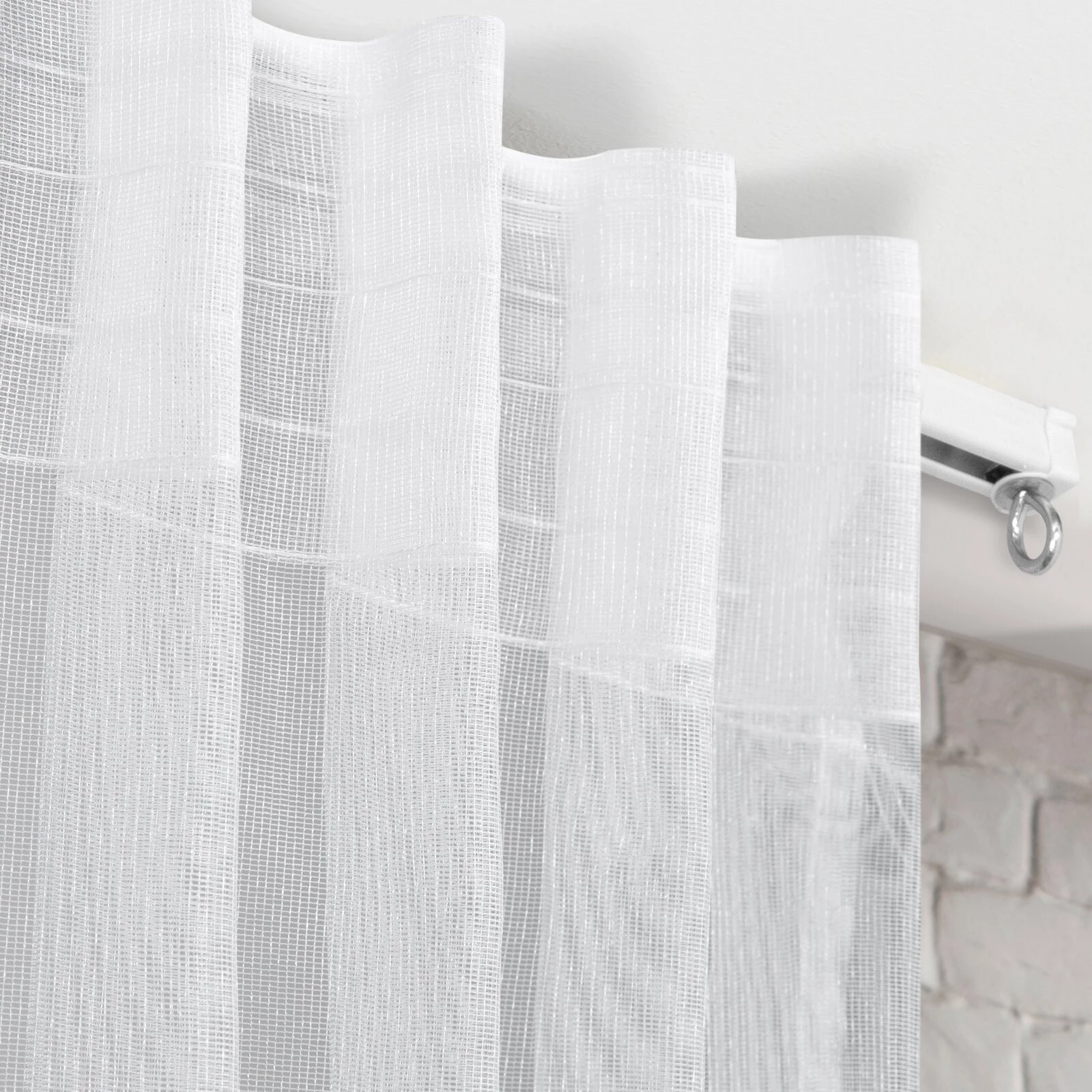 Bardzo delikatna firana o strukturze drobnej, gęstej siateczki. Lśniąca tkanina gwarantuje maksimum poczucia prywatności i przepuszcza światło do wnętrza. szerokość: 140 cm, długość: 270 cm, kolor: biały, Gramatura: 35 GSM, Skład: 100% poliester