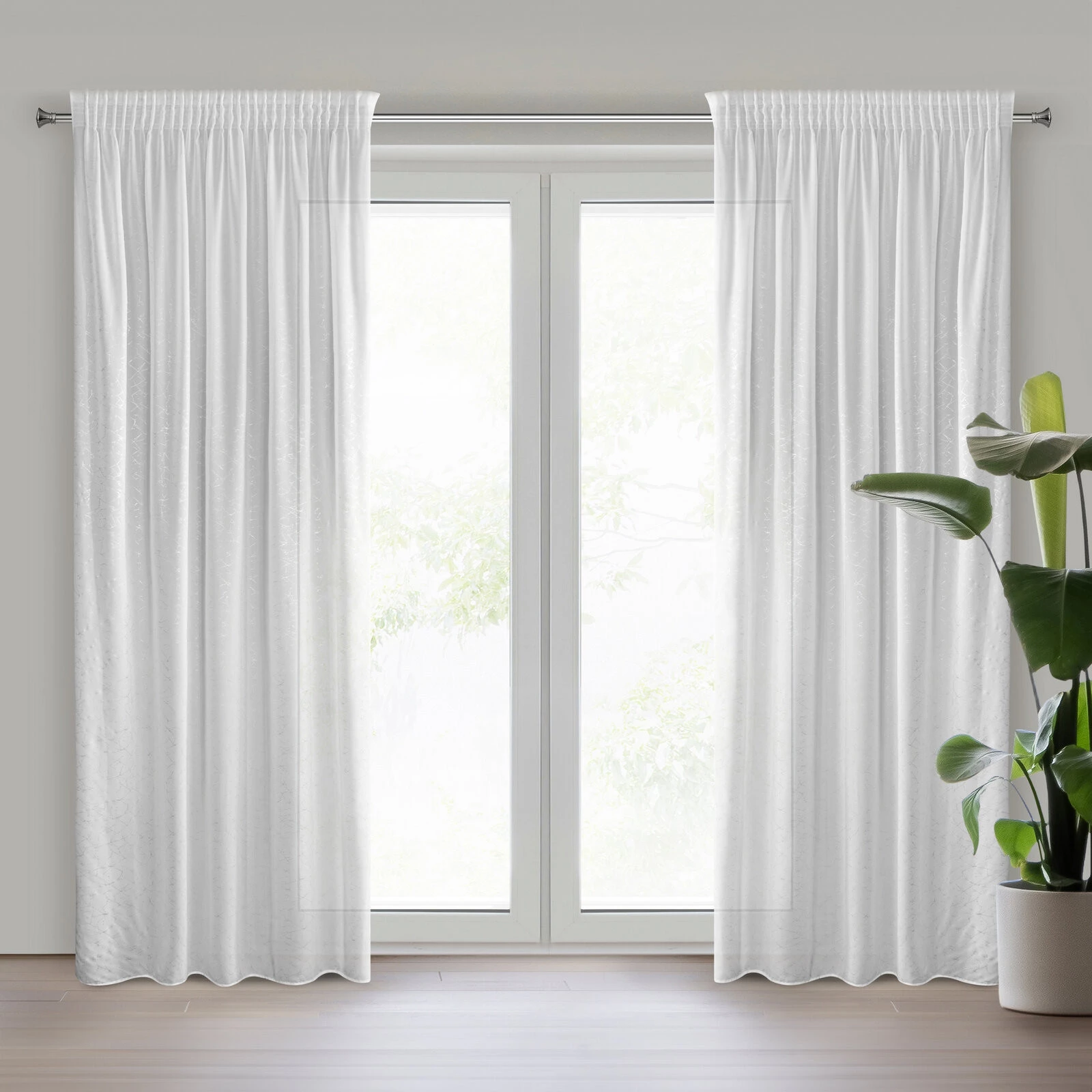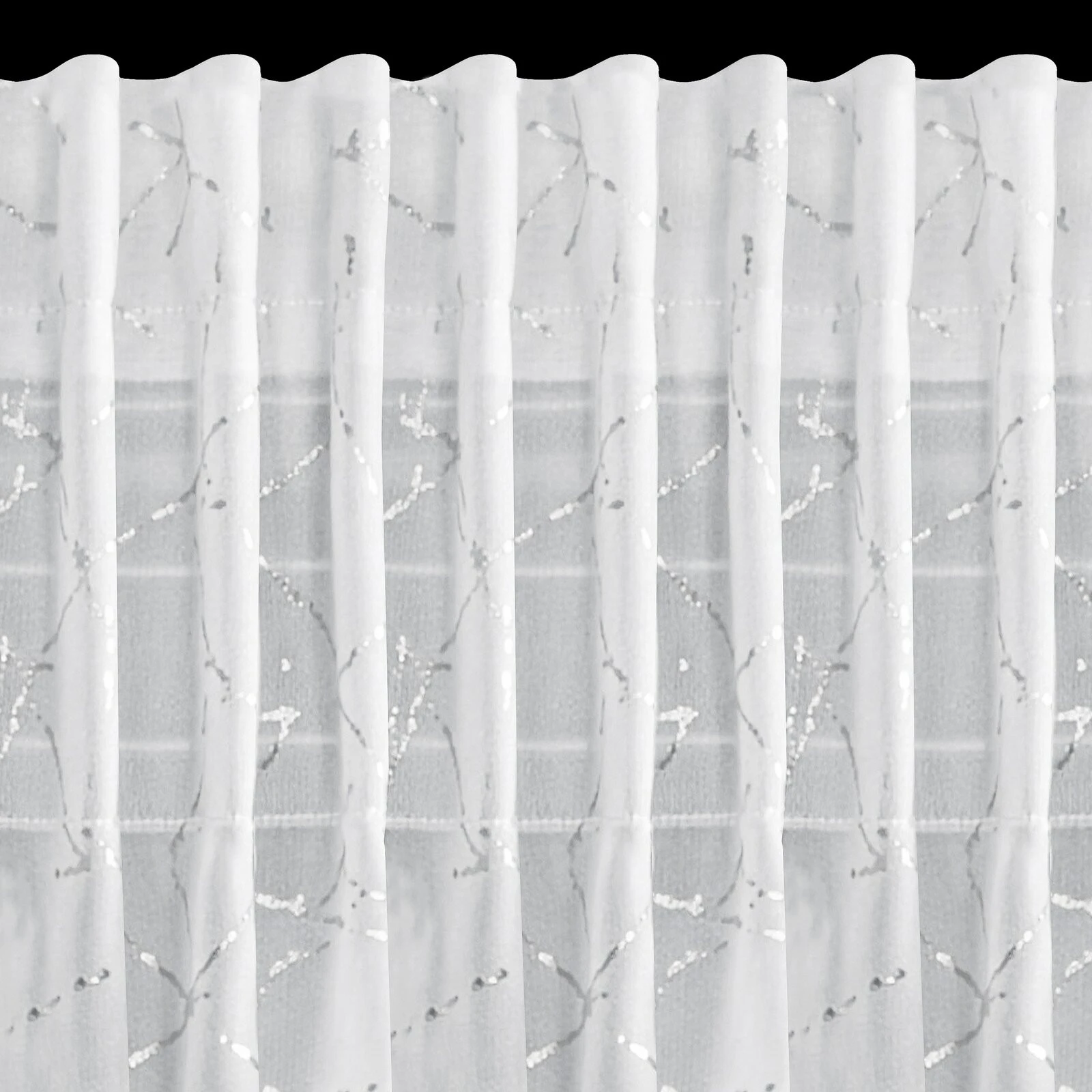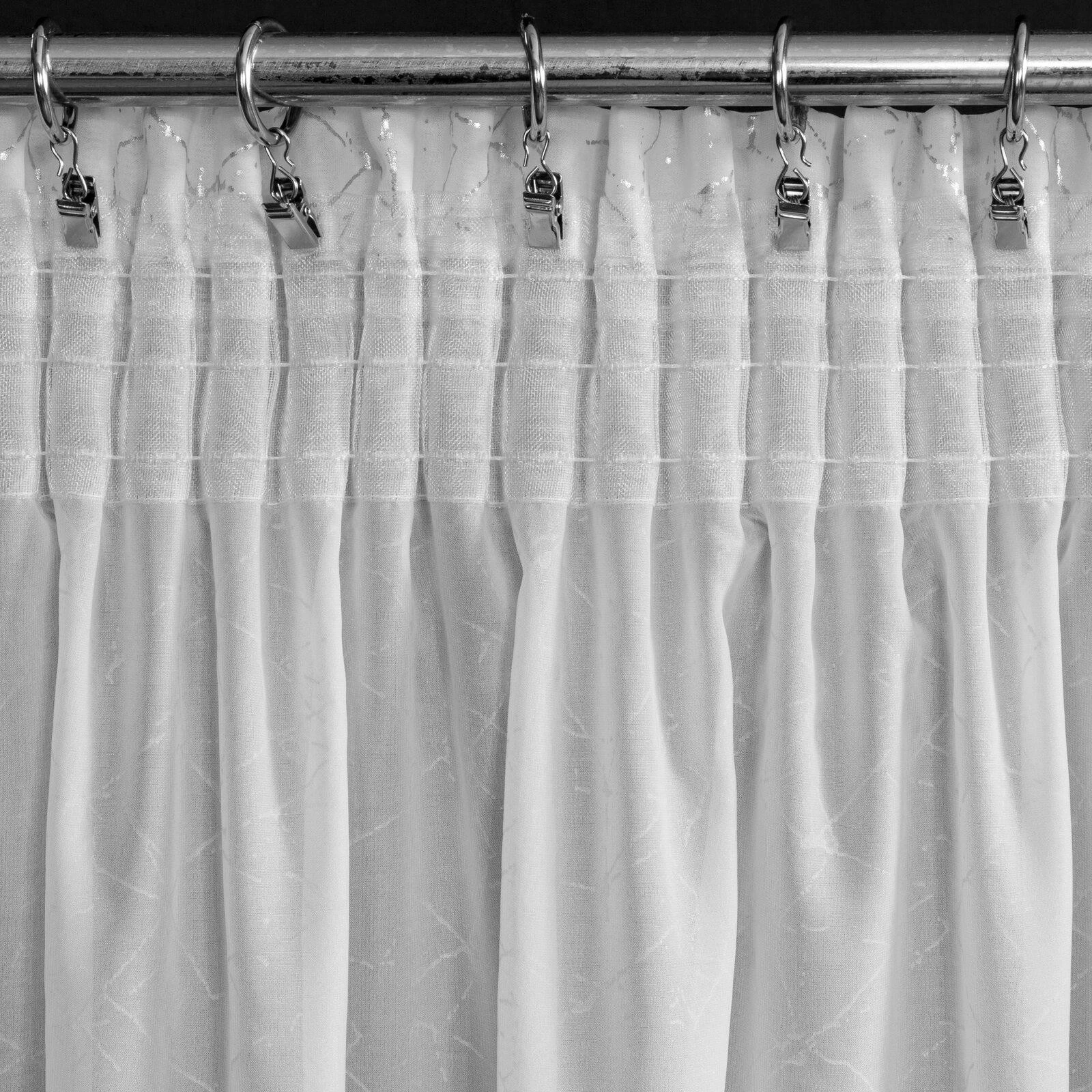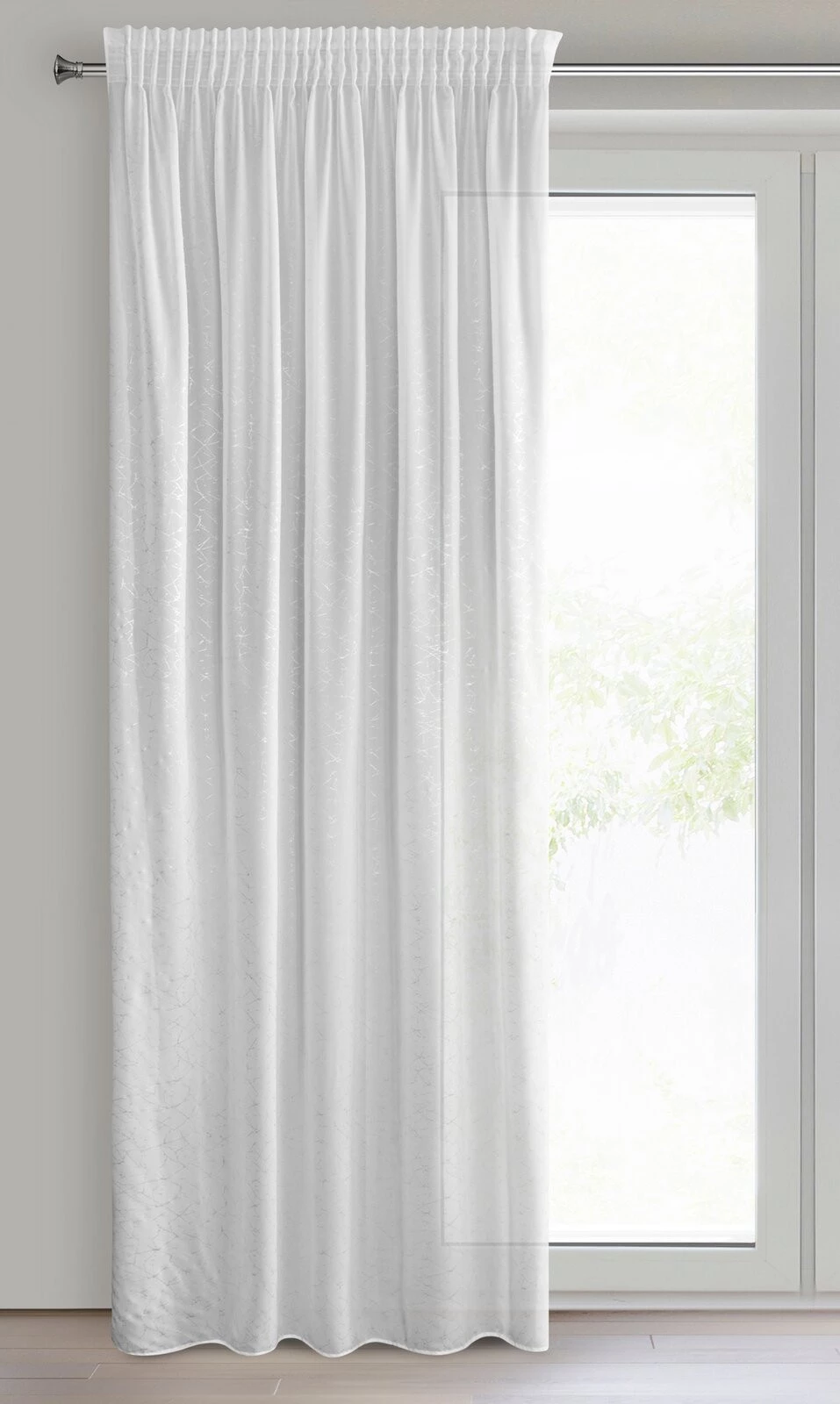 Firana gotowa z błyszczącym nadrukiem szerokość: 140 cm, długość: 270 cm, kolor: biały, Gramatura: 60 GSM, Skład: 100% poliester