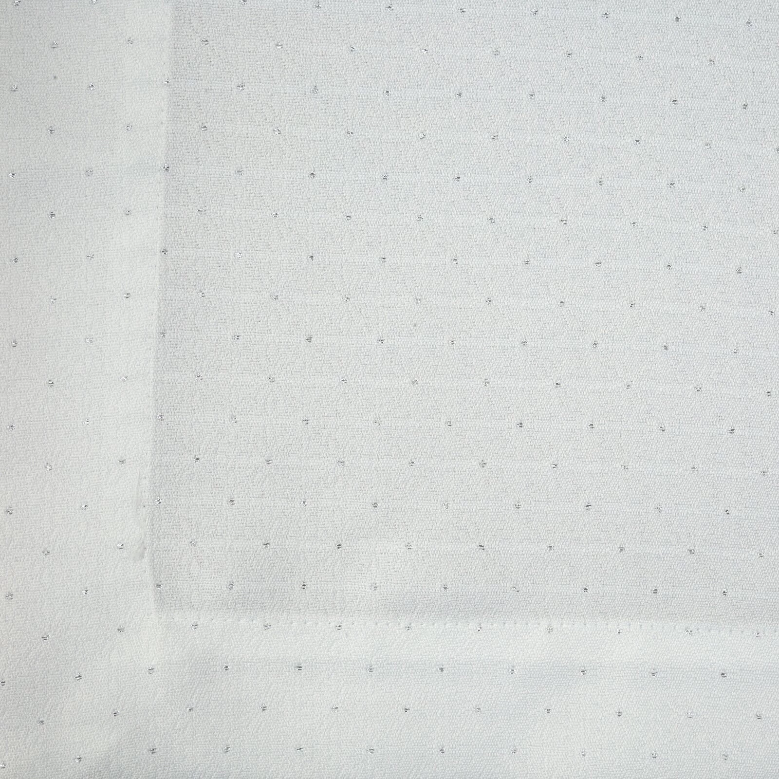 Bieżnik zdobiony srebrną, błyszczącą nicią szerokość: 40 cm, długość: 180 cm, kolor: biały, Gramatura: 160 GSM, Skład: 100% poliester