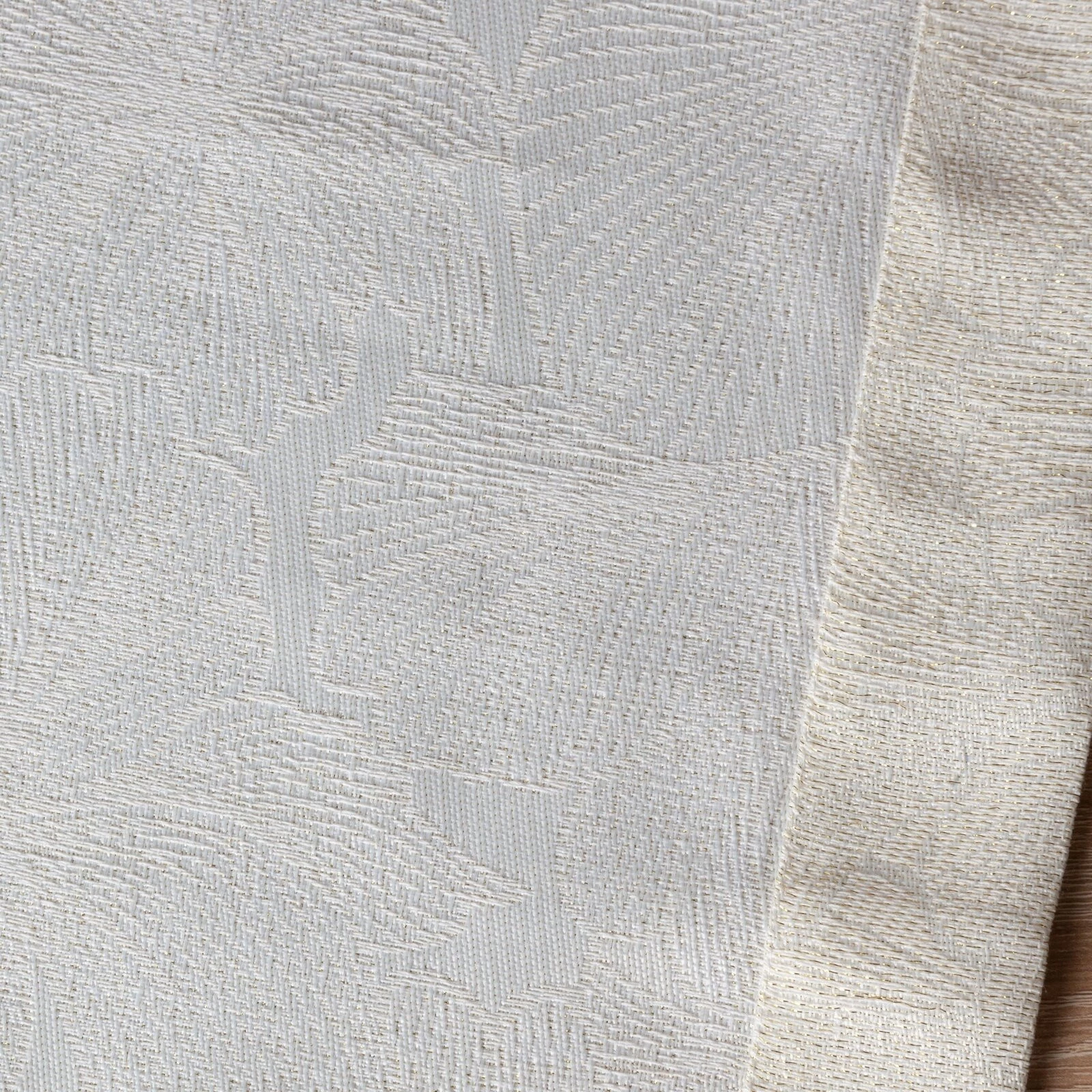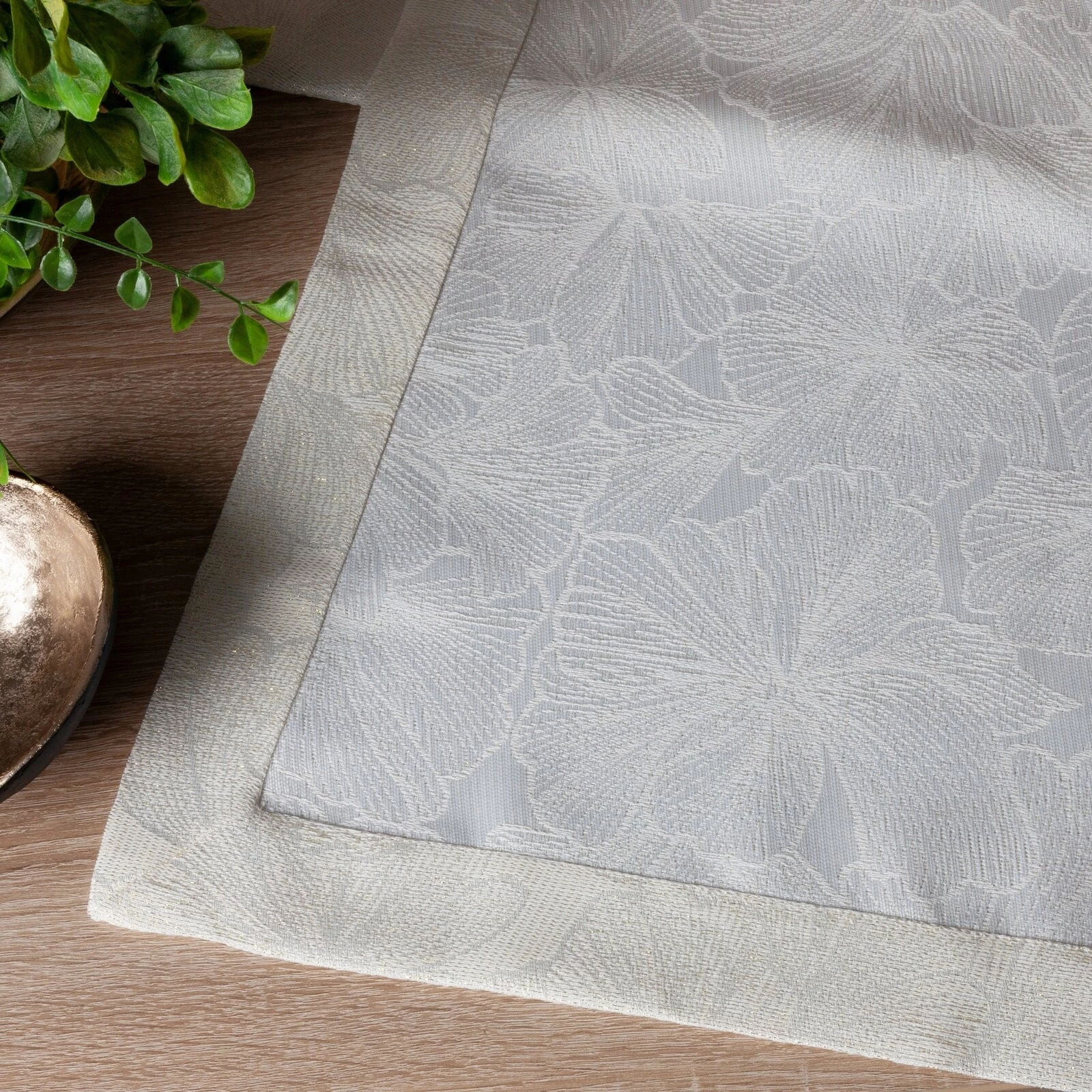 - Bieżnik zdobiony kantą oraz złotą nicią szerokość: 40 cm, długość: 140 cm, kolor: kremowy, Gramatura: 220 GSM, Skład: 100% poliester
