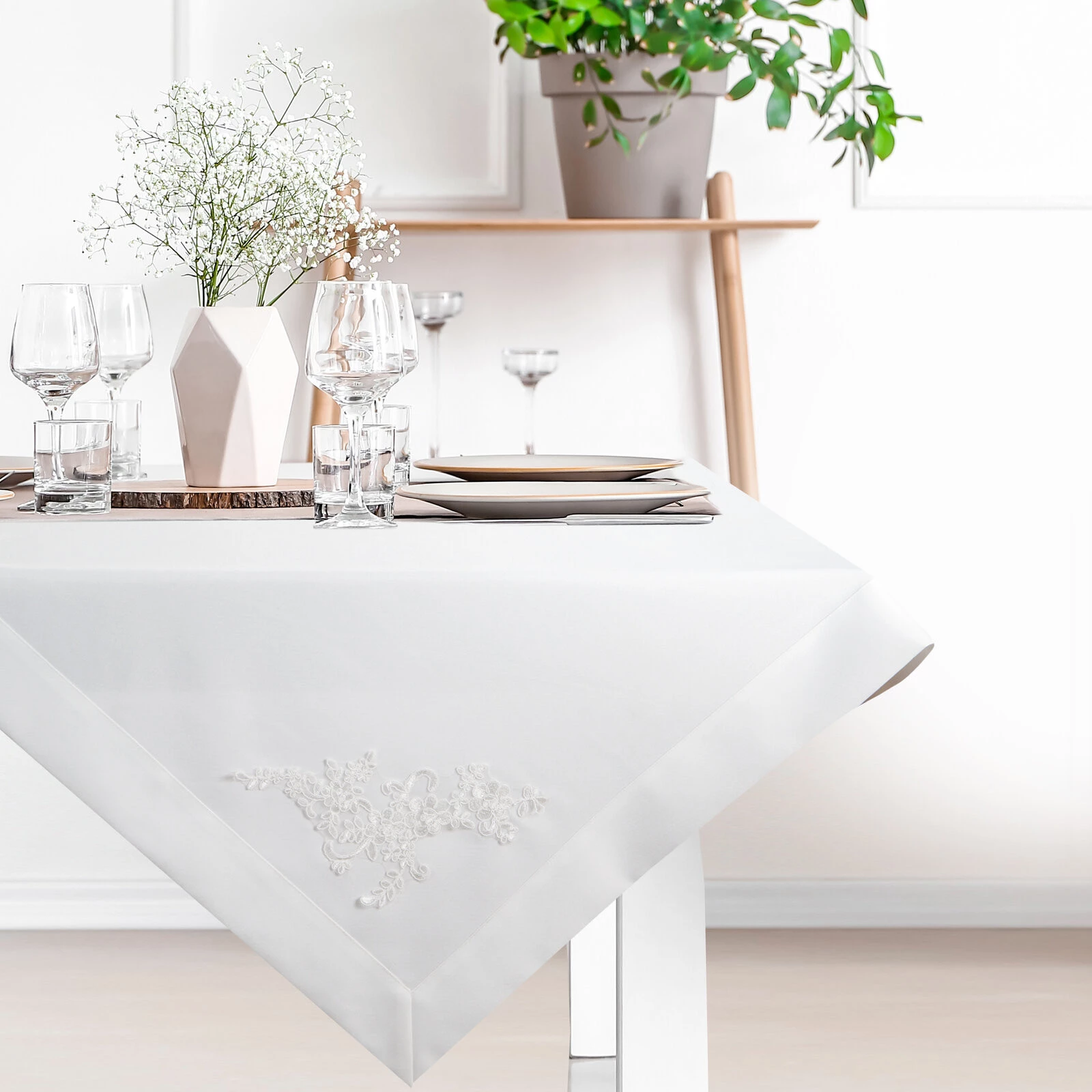 - Ekskluzywna serweta dekoracyjna z delikatnym zdobieniem szerokość: 85 cm, długość: 85 cm, kolor: biały, Gramatura: 195 GSM, Skład: 100% poliester