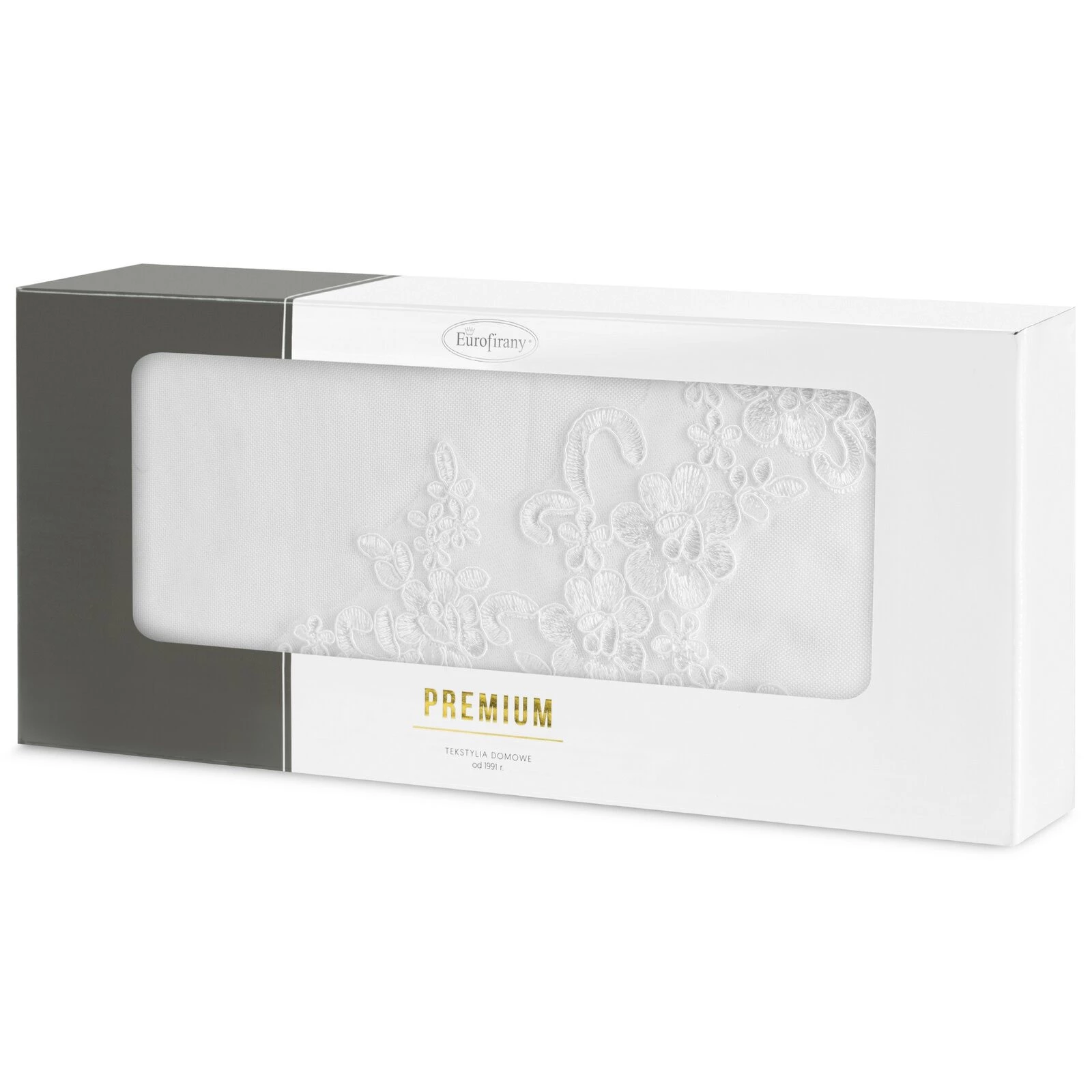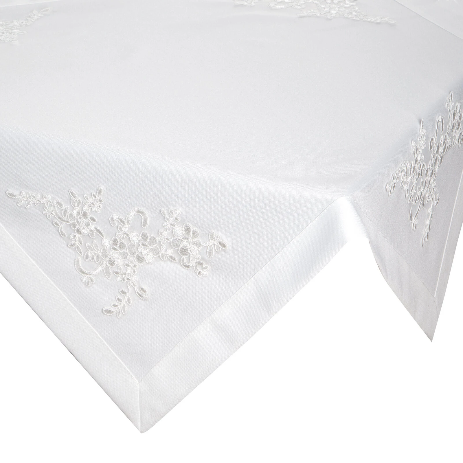 Ekskluzywna serweta dekoracyjna z delikatnym zdobieniem szerokość: 85 cm, długość: 85 cm, kolor: biały, Gramatura: 195 GSM, Skład: 100% poliester