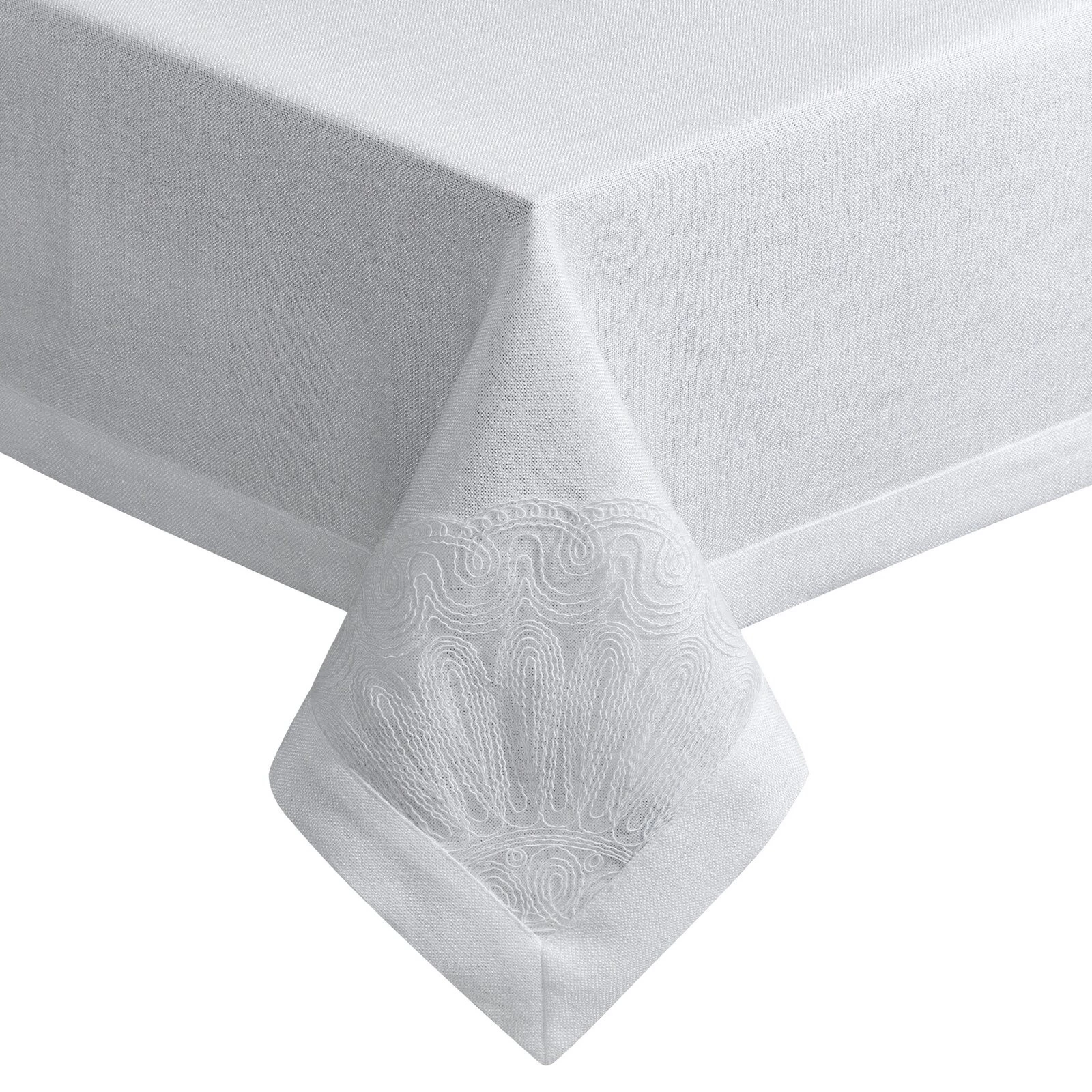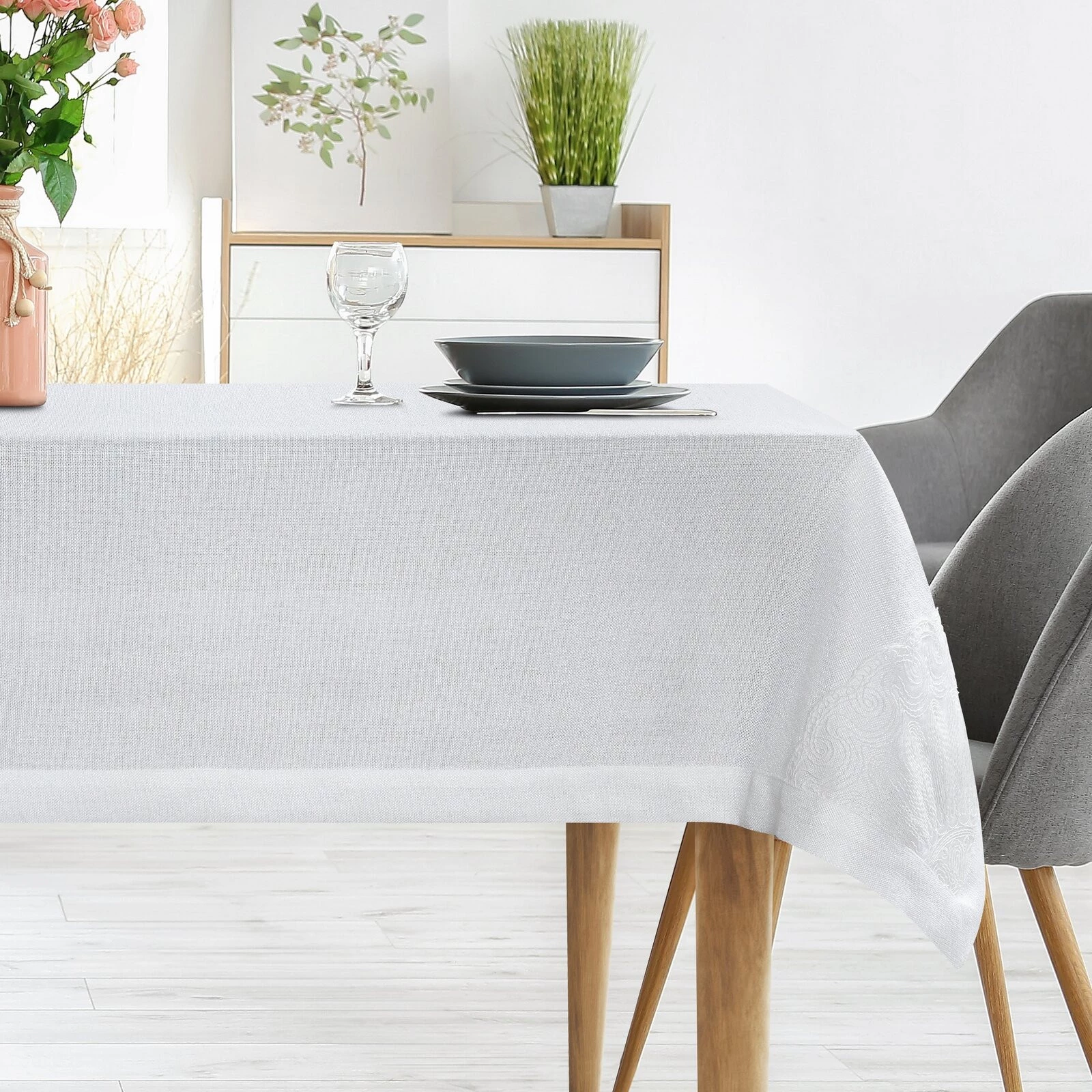 - Ekskluzywny obrus dekoracyjny z delikatnym zdobieniem szerokość: 140 cm, długość: 280 cm, kolor: biały, Gramatura: 280 GSM, Skład: 100% poliester