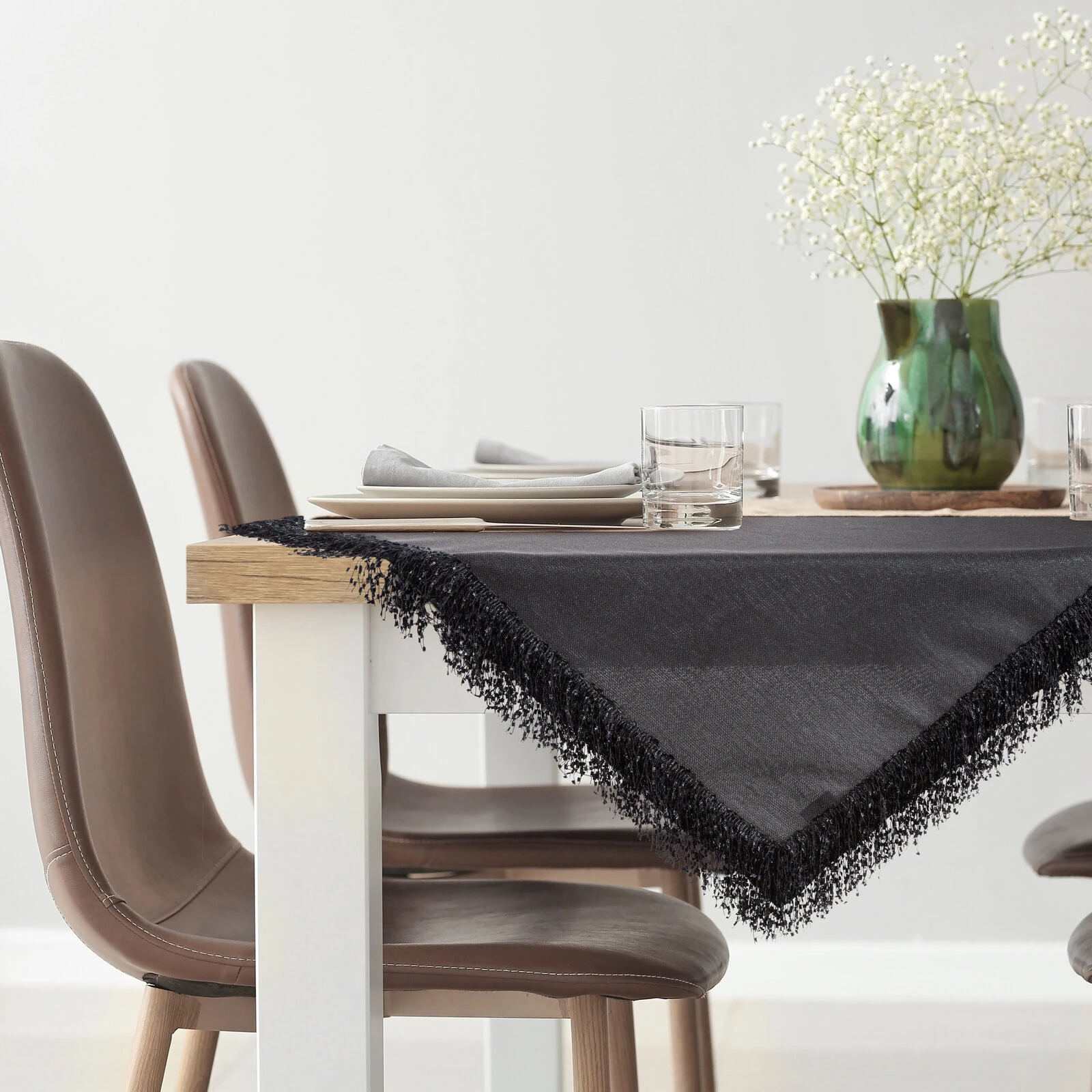 - Ekskluzywna gładka serweta z dekoracyjną taśmą z frędzelkami szerokość: 85 cm, długość: 85 cm, kolor: czarny, Gramatura: 280 GSM, Skład: 100% poliester