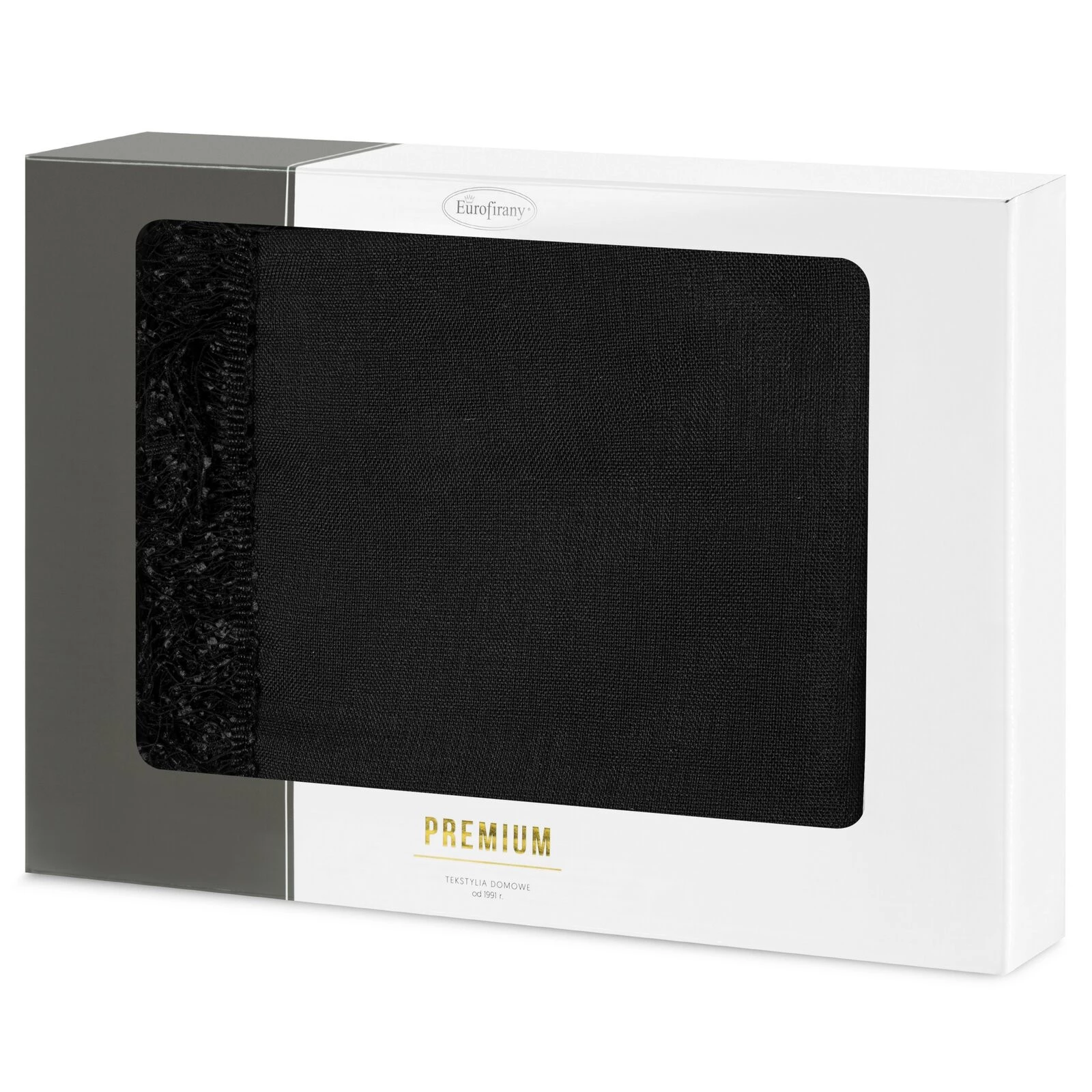 - Ekskluzywny gładki okragły obrus z dekoracyjną taśmą z frędzelkami kolor: czarny, Gramatura: 255 GSM, Skład: 100% poliester