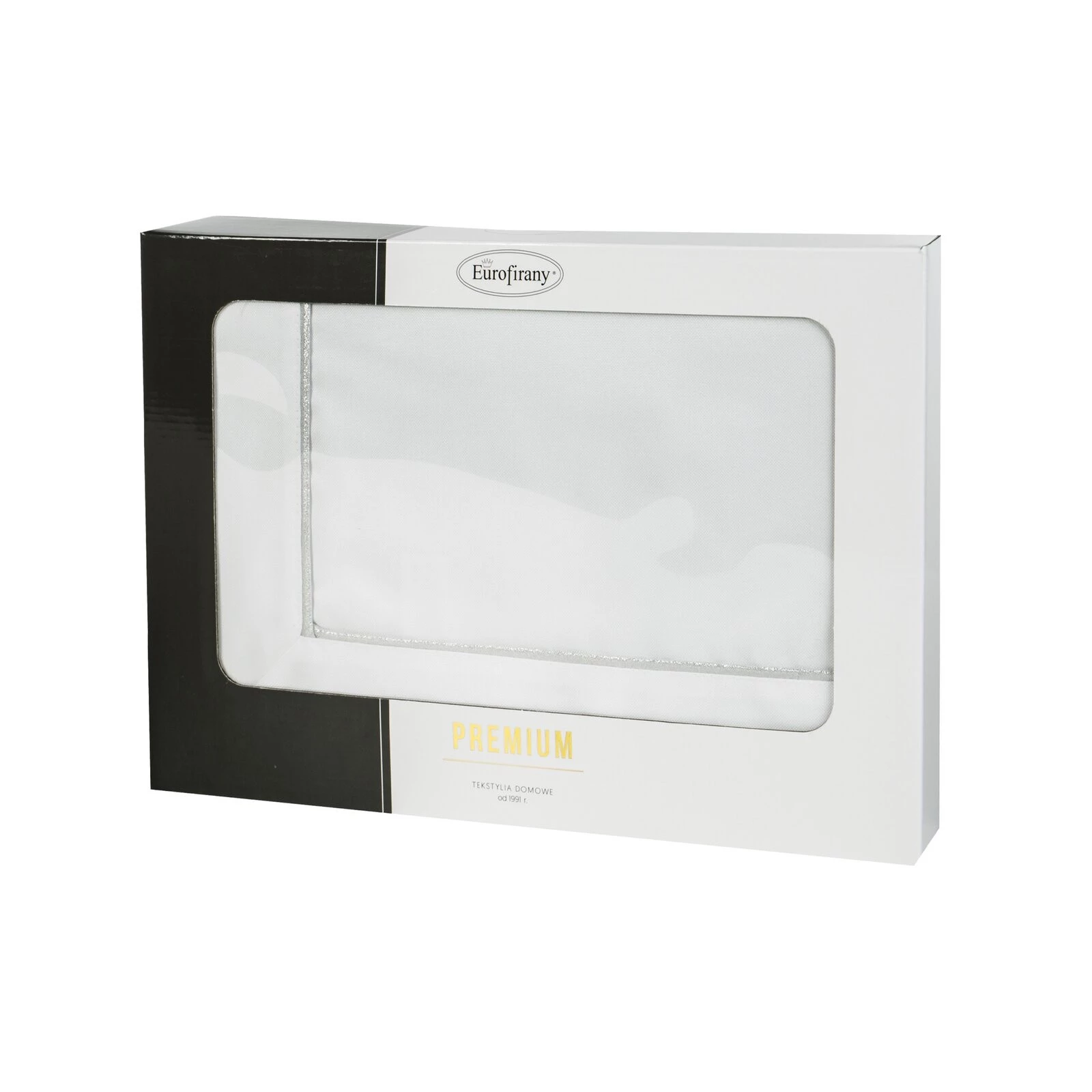 Obrus z delikatną srebrną lamówką,zapakowany w eleganckie pudełko szerokość: 145 cm, długość: 240 cm, kolor: biały, Gramatura: 190 GSM, Skład: 100% poliester
