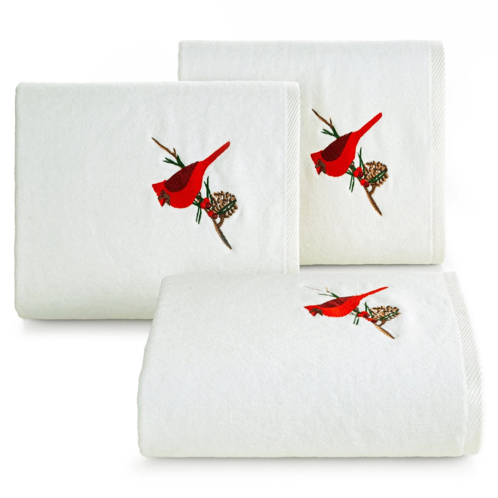 Ręcznik świąteczny z żakardową bordiurą zdobioną haftem szerokość: 70 cm, długość: 140 cm, kolor: biały, Gramatura: 480 GSM, Skład: 100% bawełna; część ozdobna: 100% poliester