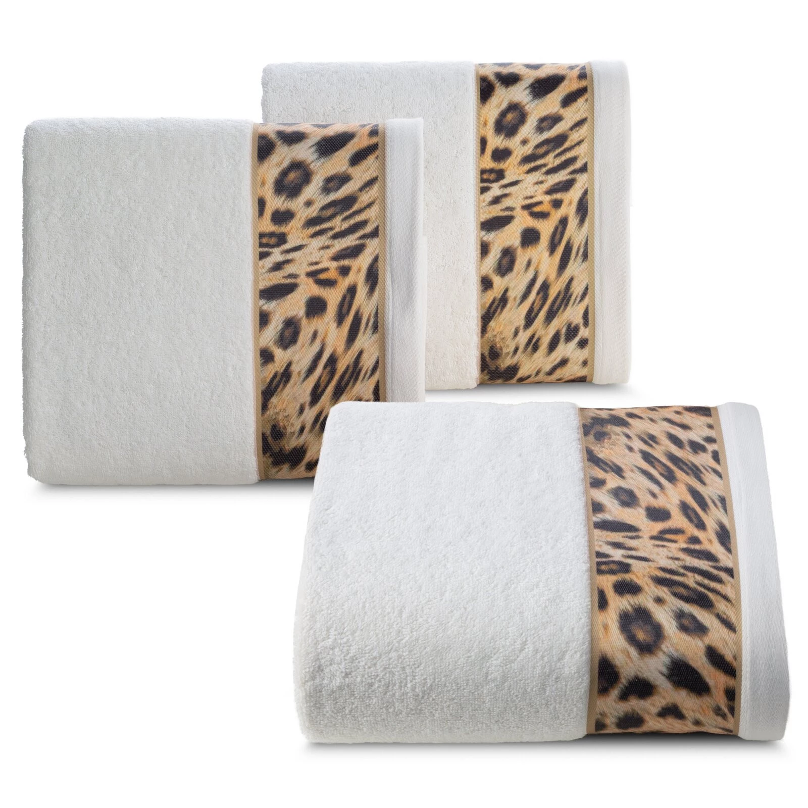 Ręcznik z drukowaną bordiurą szerokość: 70 cm, długość: 140 cm, kolor: kremowy, Gramatura: 500 GSM, Skład: 100% bawełna; część ozdobna: 100% poliester