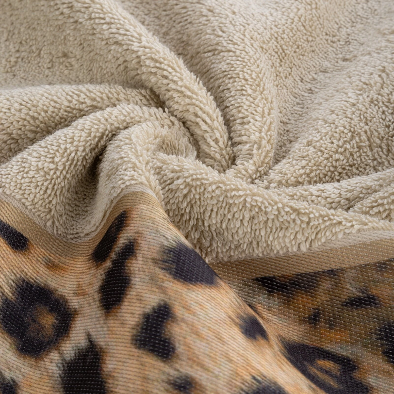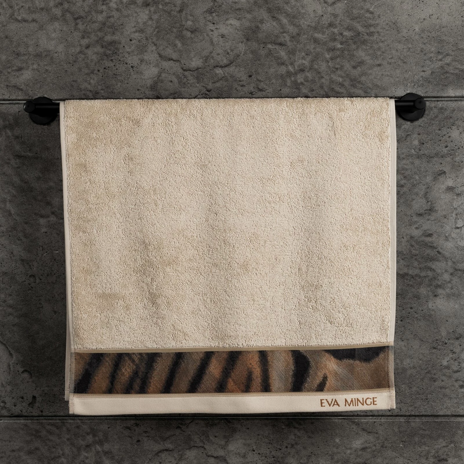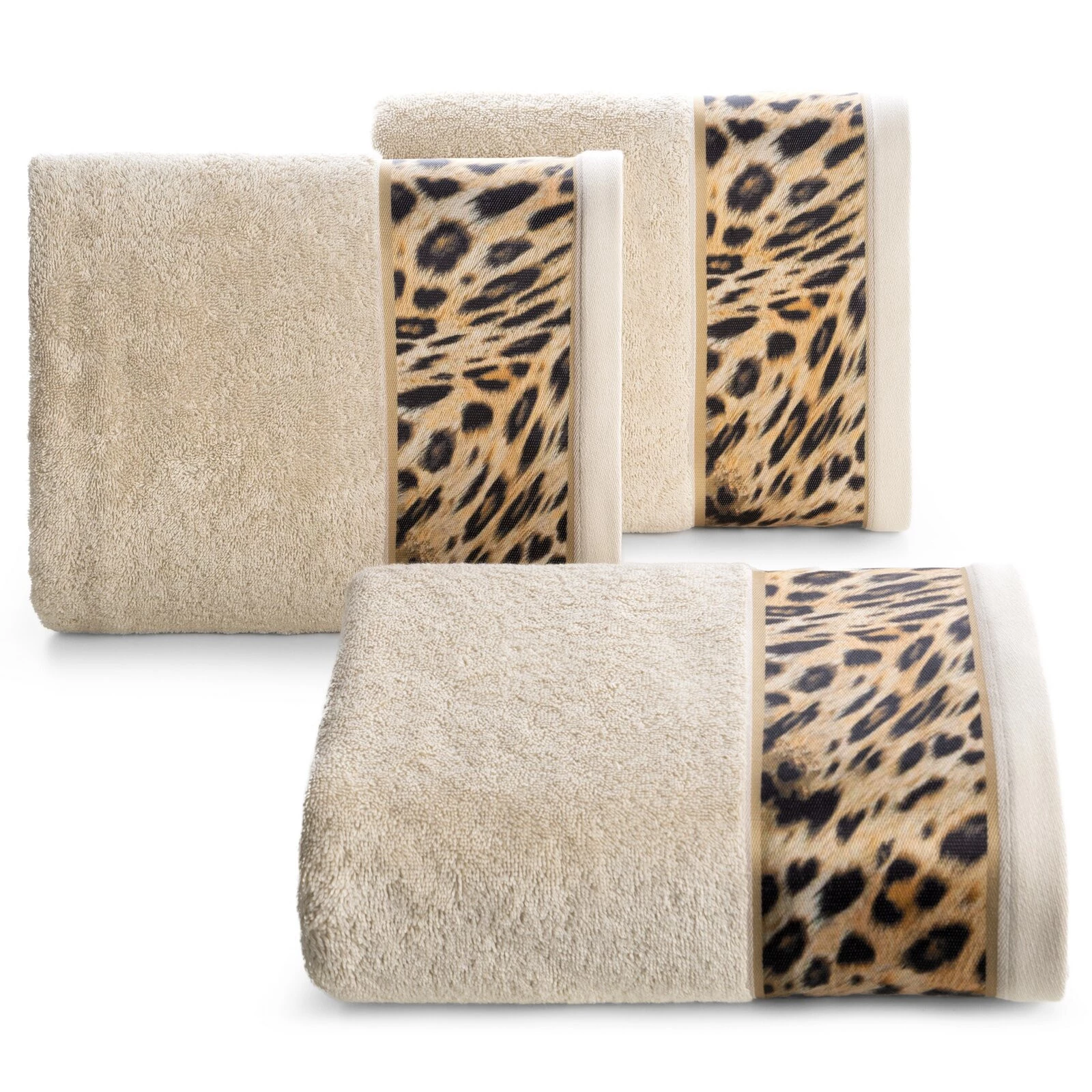 Ręcznik z drukowaną bordiurą szerokość: 70 cm, długość: 140 cm, kolor: beżowy, Gramatura: 500 GSM, Skład: 100% bawełna; część ozdobna: 100% poliester