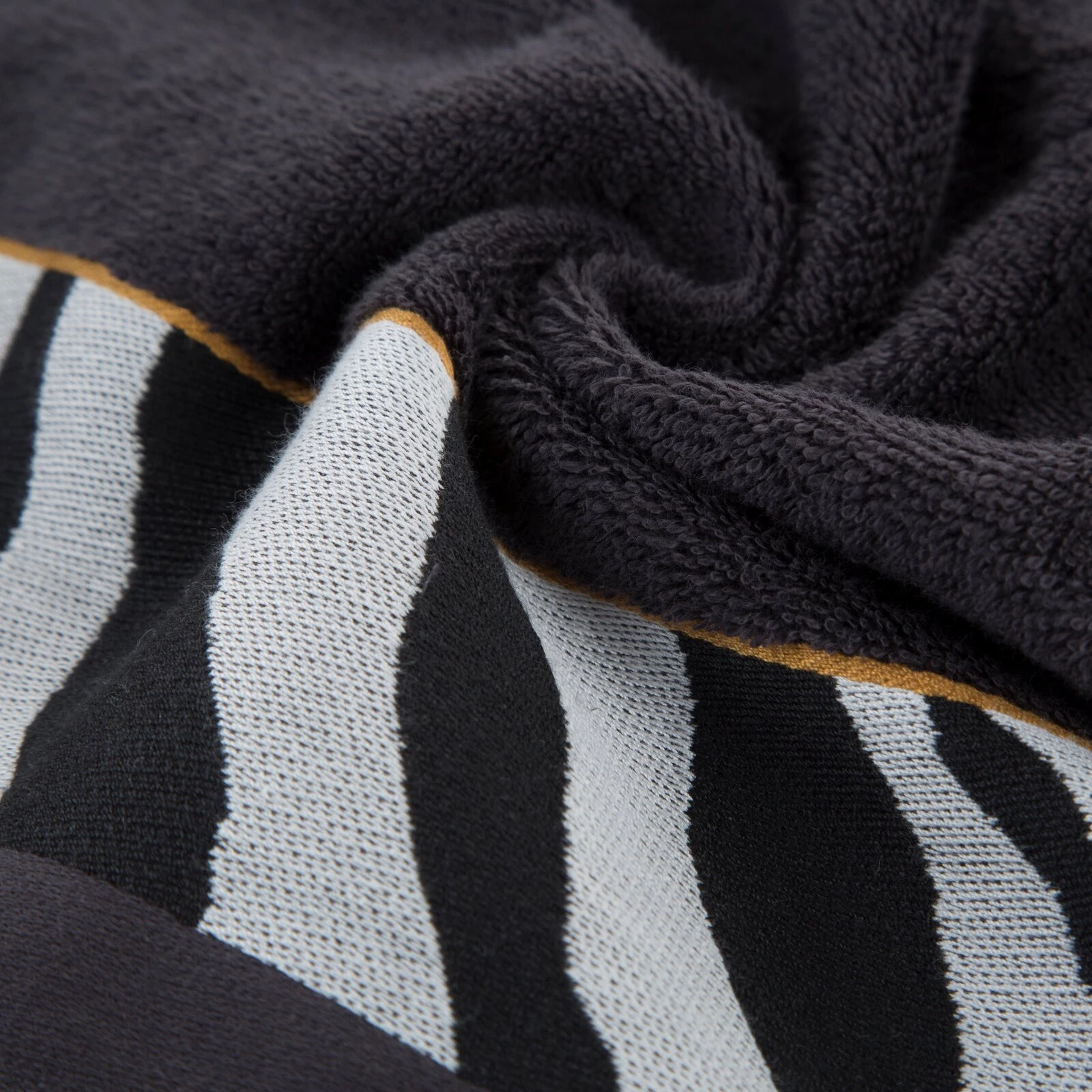 Ręcznik z drukowaną bordiurą szerokość: 50 cm, długość: 90 cm, kolor: czarny, Gramatura: 500 GSM, Skład: 100% bawełna; część ozdobna: 100% poliester