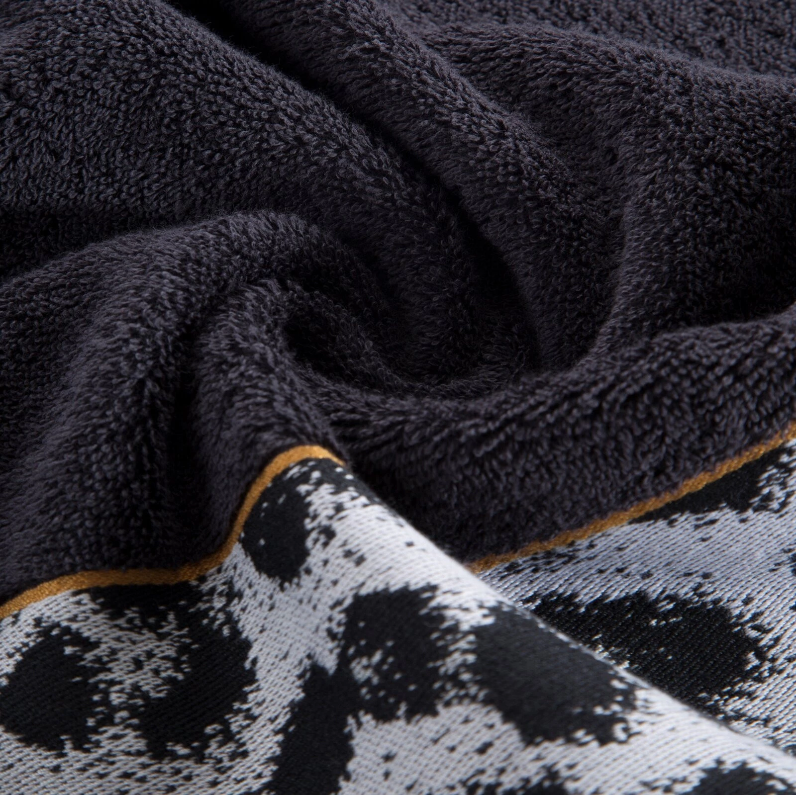 Ręcznik z drukowaną bordiurą szerokość: 70 cm, długość: 140 cm, kolor: czarny, Gramatura: 500 GSM, Skład: 100% bawełna; część ozdobna: 100% poliester