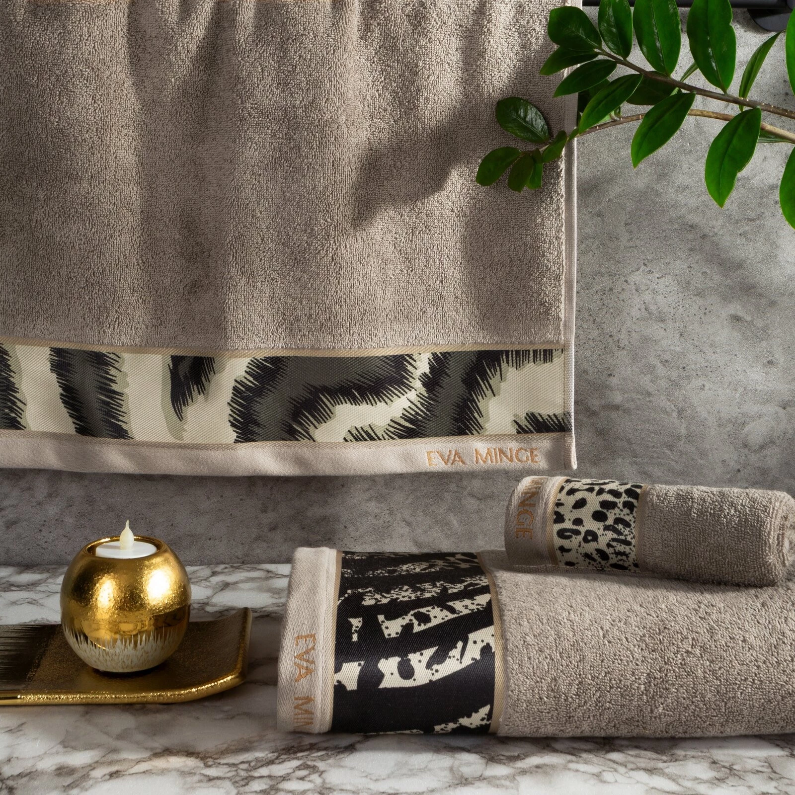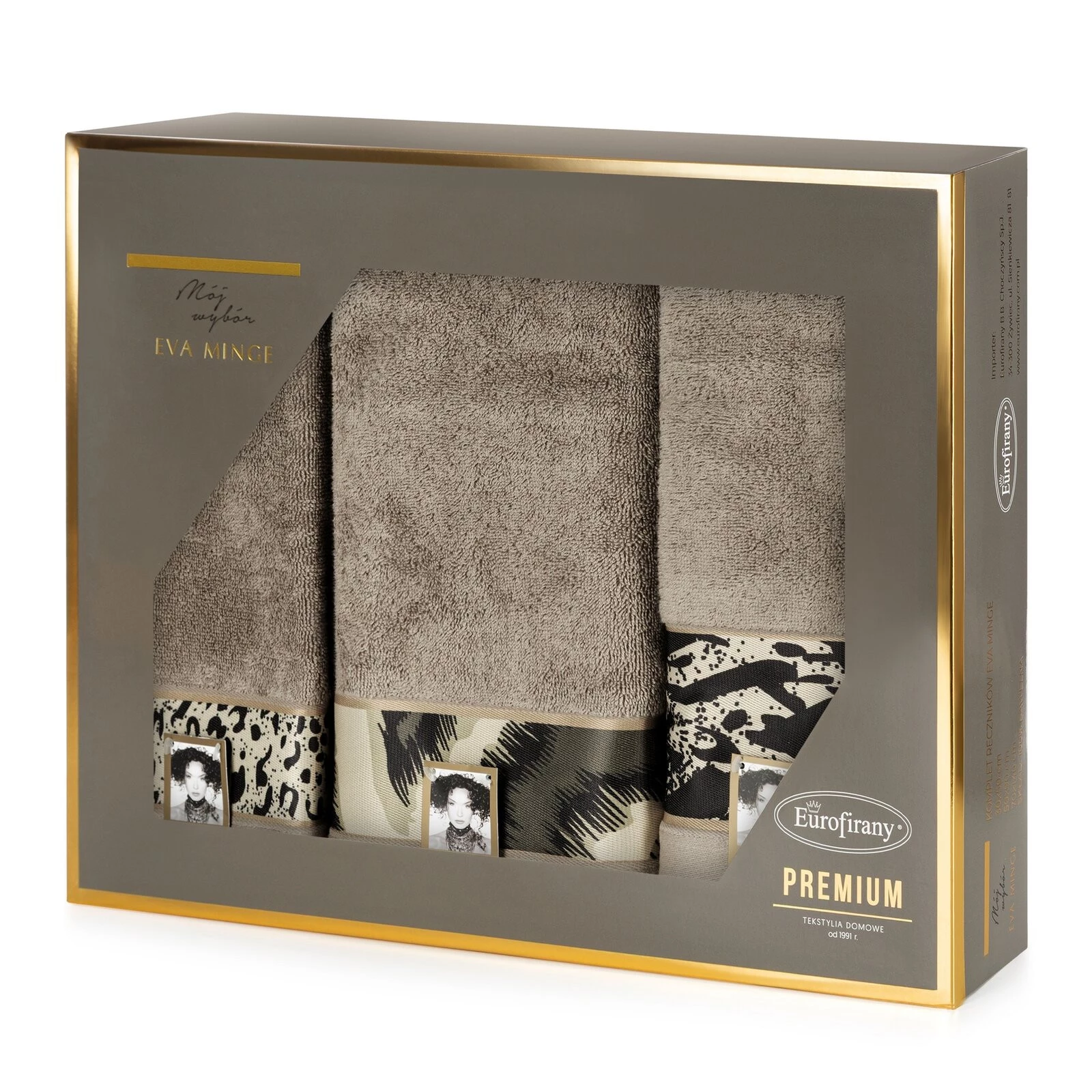 Komplet ręczników szerokość: 46 cm, długość: 36 cm, kolor: ciemnobeżowy, Gramatura: 500 GSM, Skład: 100% bawełna; część ozdobna: 100% poliester