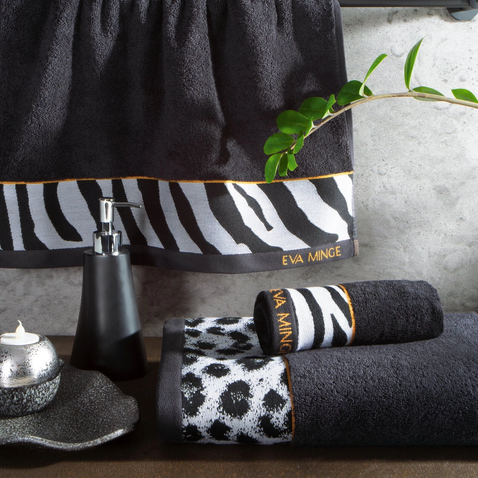 Komplet ręczników szerokość: 46 cm, długość: 36 cm, kolor: czarny, Gramatura: 500 GSM, Skład: 100% bawełna; część ozdobna: 100% poliester