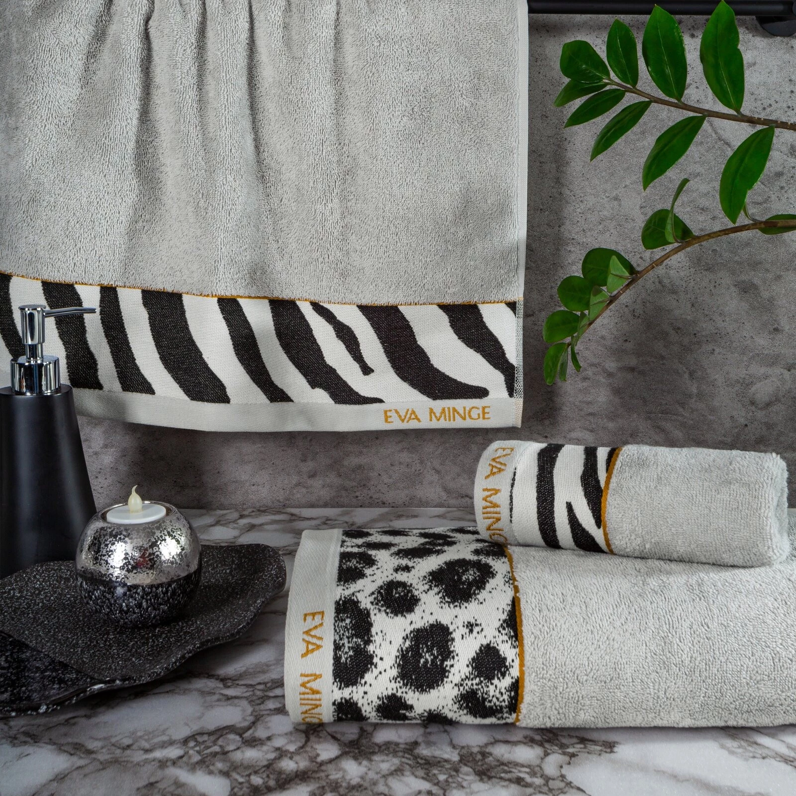 Komplet ręczników szerokość: 46 cm, długość: 36 cm, kolor: srebrny, Gramatura: 500 GSM, Skład: 100% bawełna; część ozdobna: 100% poliester